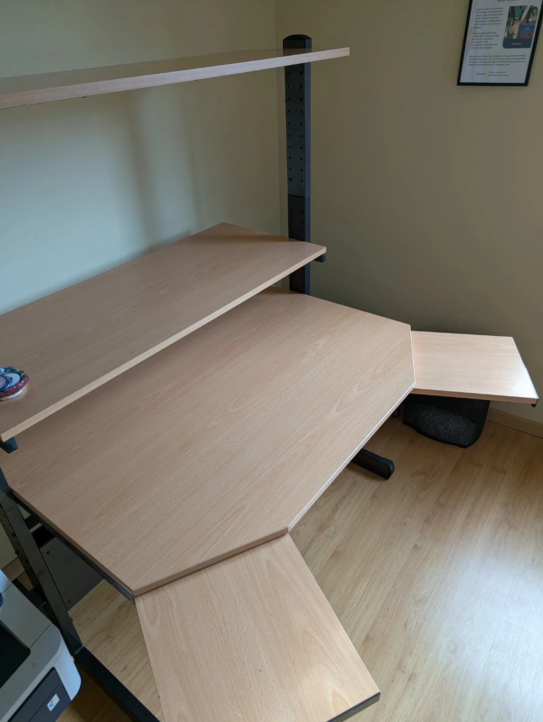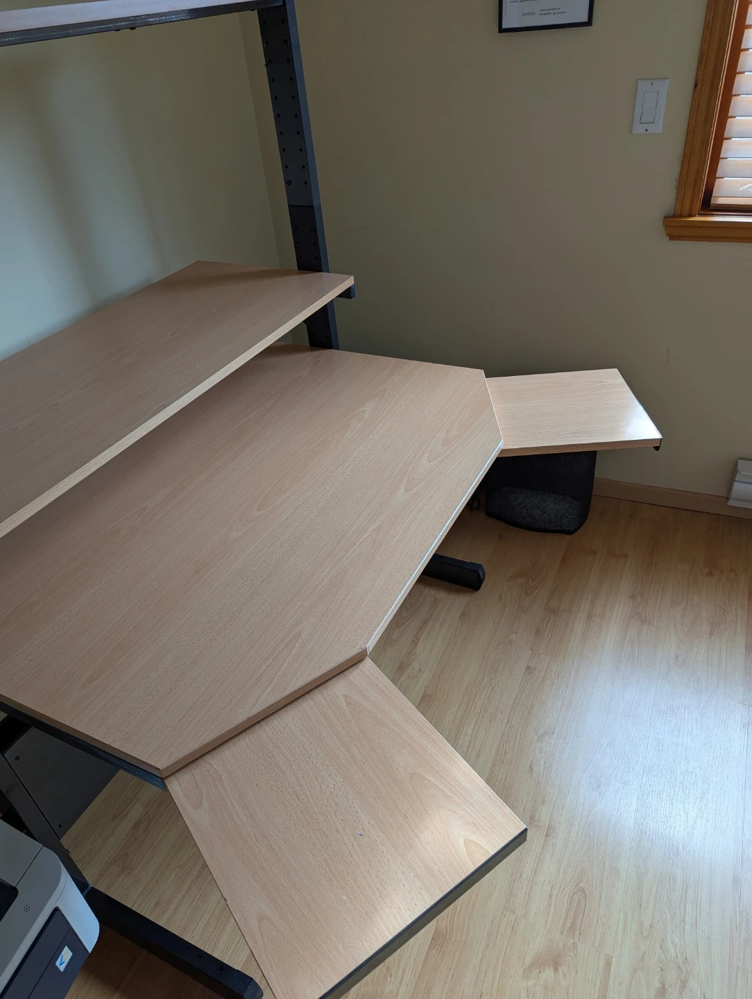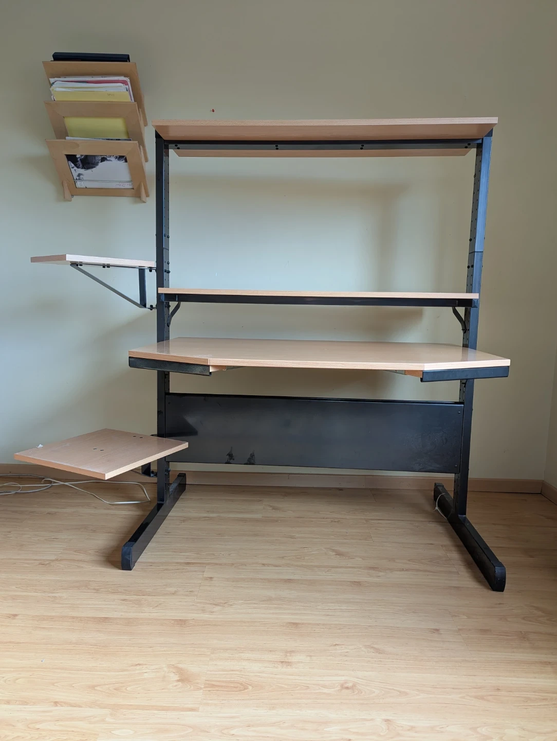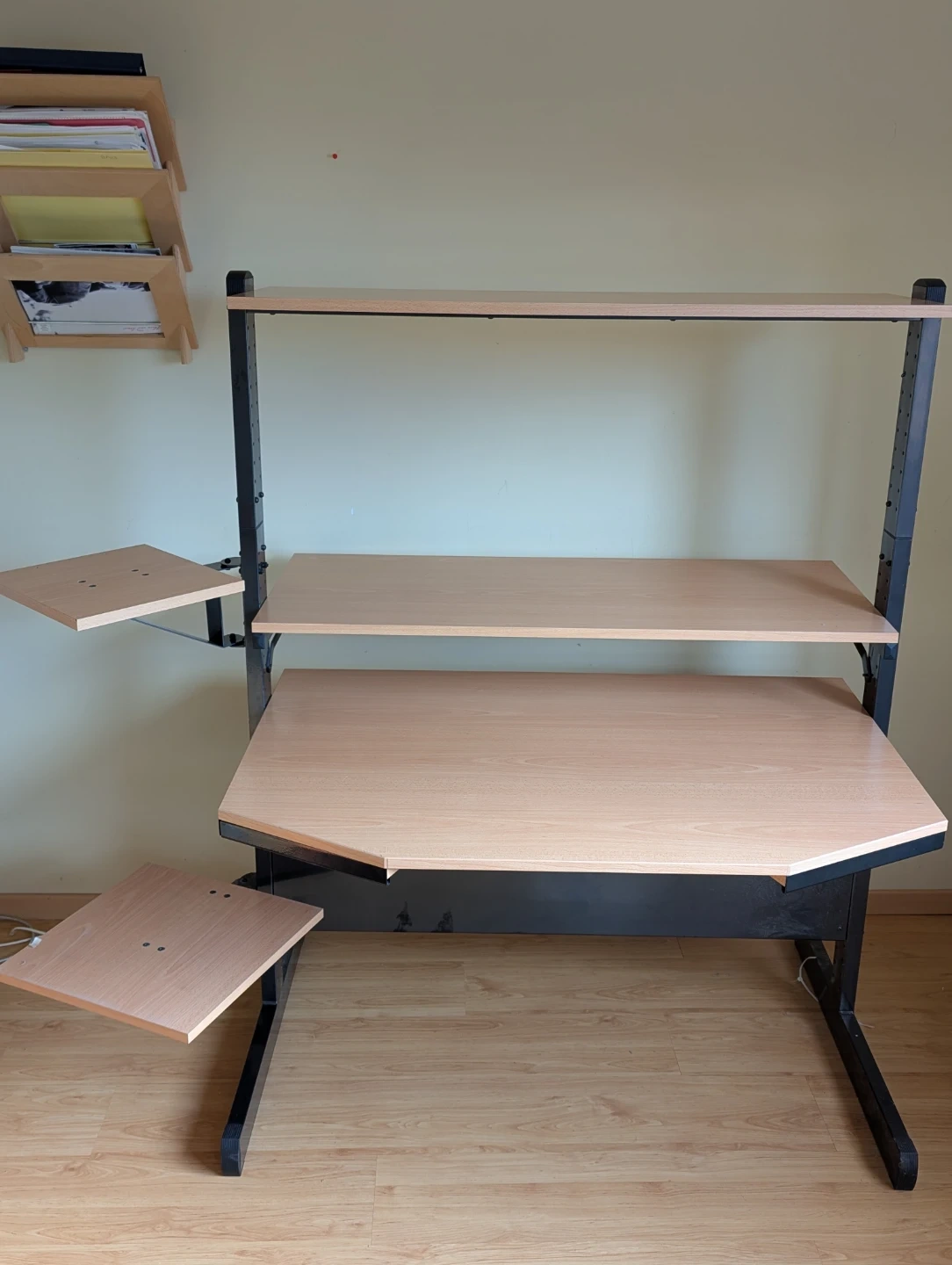 - Adjustable desk height and adjustable top shelf