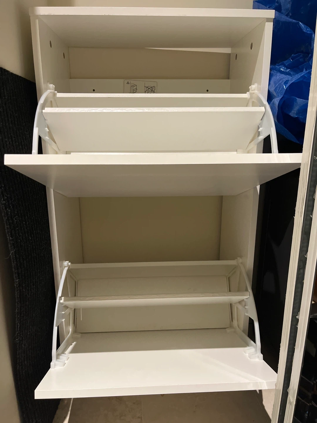 This white shoe cabinet from IKEA has two flip-out drawers for storing shoes. It's a great way to keep your entryway tidy.