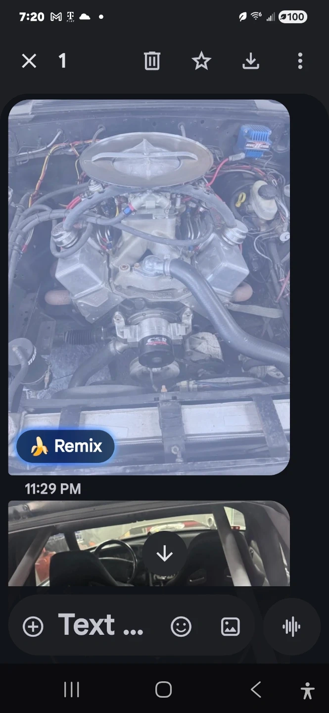 Customized Ford Mustang GT from the 1987-1993 model years. This vehicle has undergone a significant engine modification. It features a roll cage and racing seats, indicating a performance-oriented build. The engine bay is filled with aftermarket components and a nitrous oxide system. This is a 7 second car powered by big block Chevy worked to bllllls