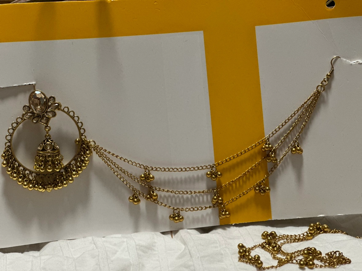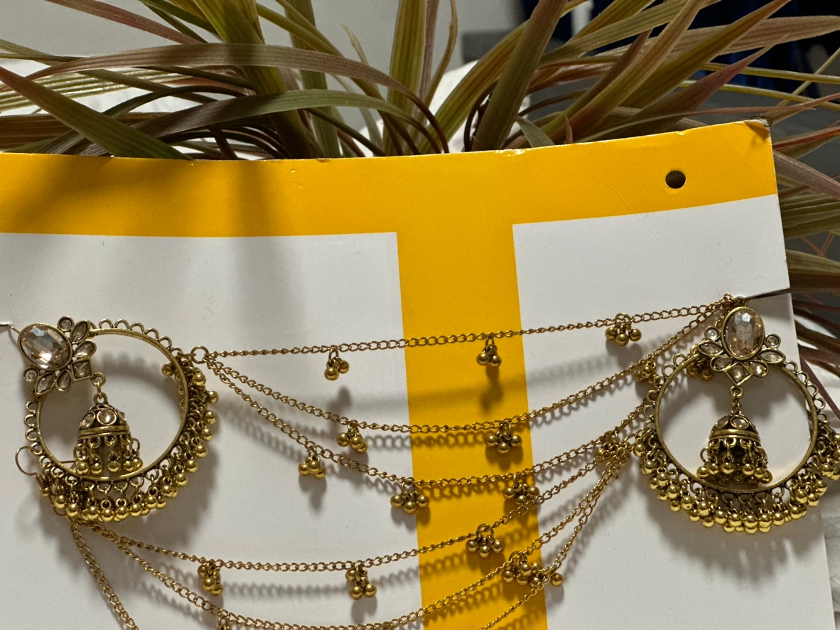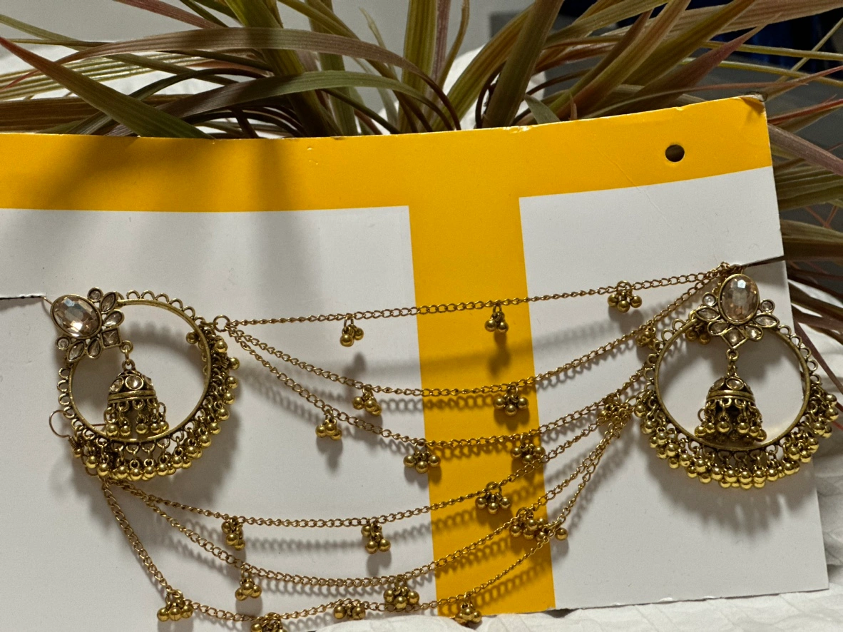 3. **Ear Chains:** These are earrings that include a chain extending from the earring to a clip or pin for the hair.