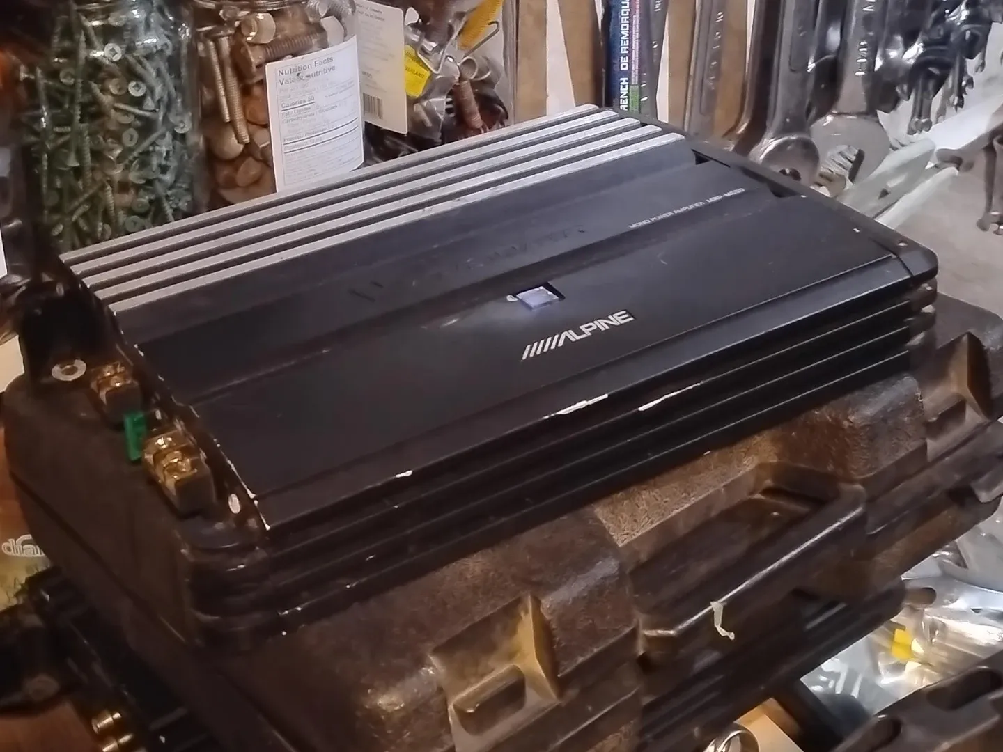 Selling an Alpine mono power amplifier, model MRP-M450. This amplifier is black with a silver heat sink. It's a reliable piece of car audio equipment. Ready for a new home!