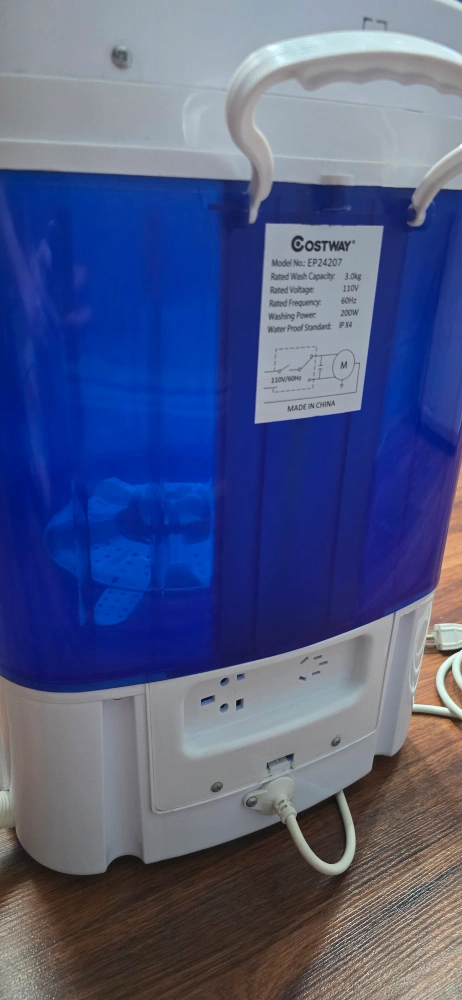 Equipped with dual control knobs, this washing machine offers a 15-minute wash timer and a 6-minute spin timer to tackle your laundry with ease. Included with a 14"/36 cm drain hose, this laundry machine facilitates an effortless drainage process after washing.