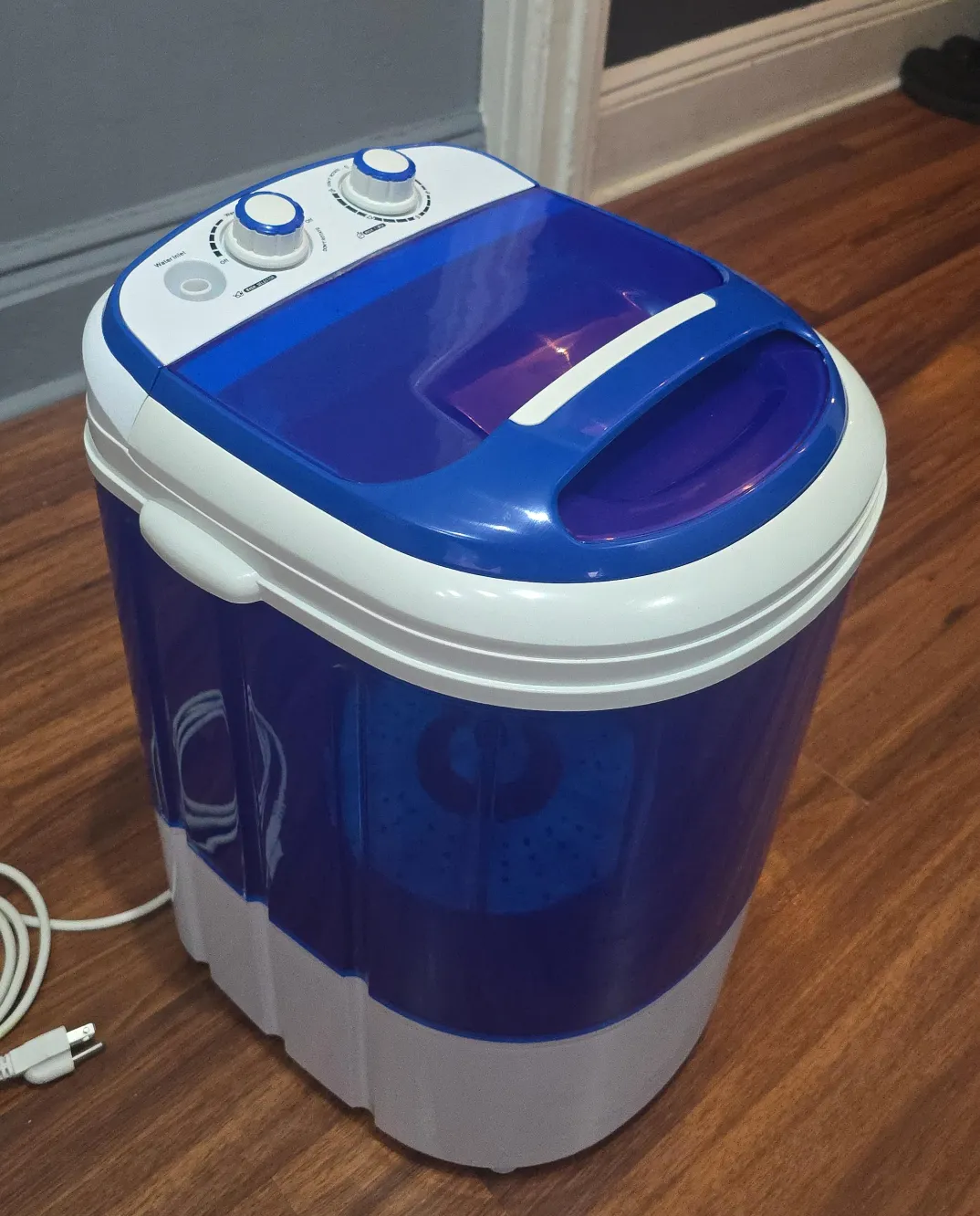 This washer and spinner combo, with a separate spin basket, makes laundry tasks fast and efficient. The portable washing machine can handle up to 5.5 lbs/2.5 kg of laundry per load, perfect for T-shirts, pants, towels, socks and underwear.