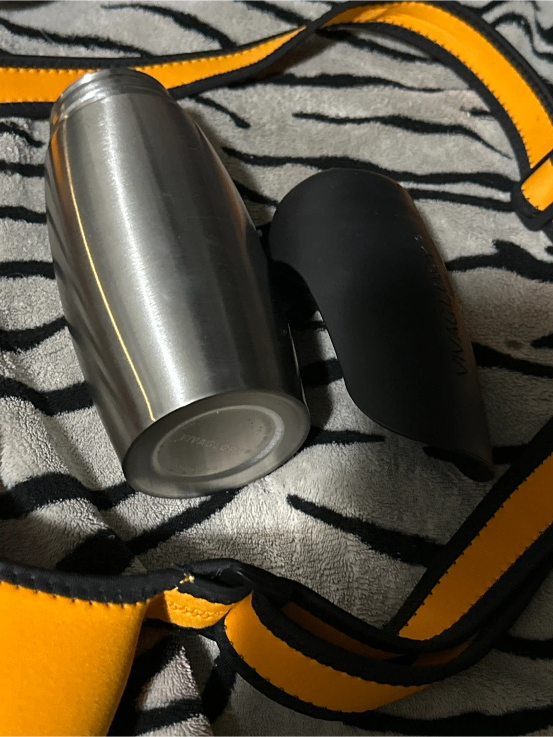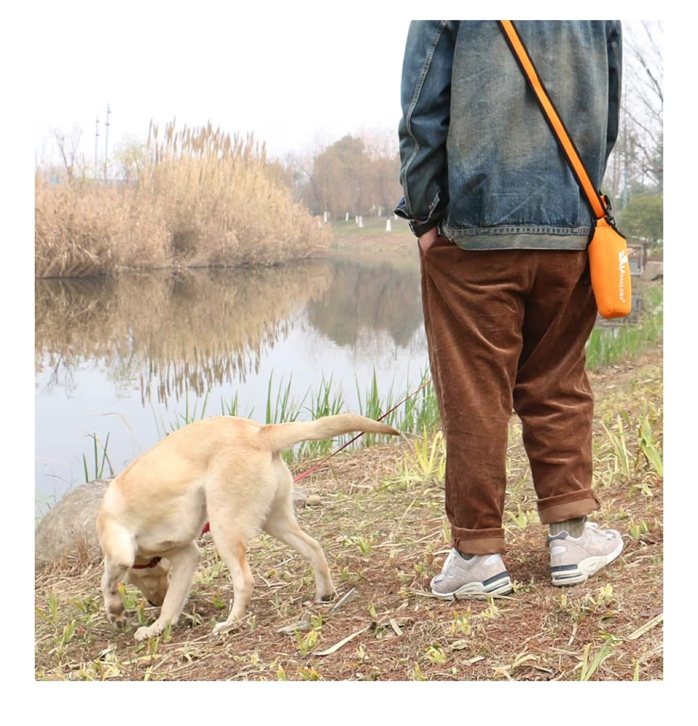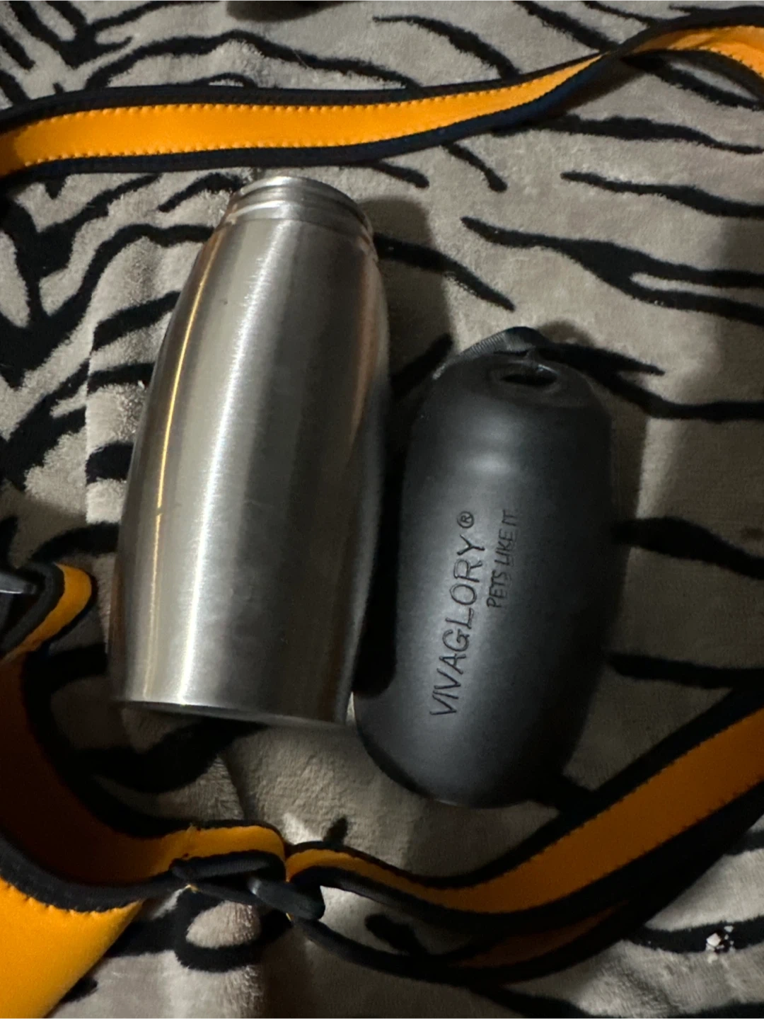 This VIVAGLORY dog water bottle and holder combo is perfect for travel and walking. It's made of food-grade stainless steel and has a larger capacity of 25oz. The set includes an orange bottle holder with an adjustable shoulder strap.