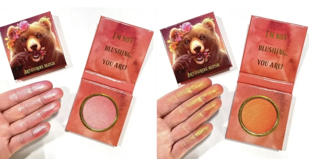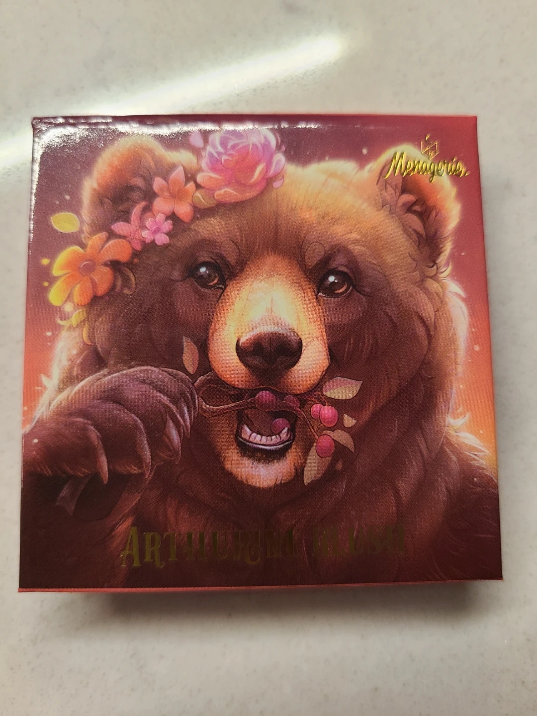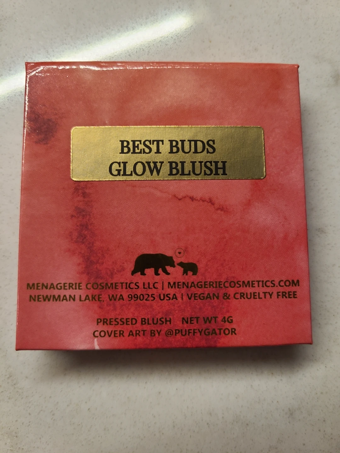 Menagerie Cosmetics Best Buds Glow Blush! It's a pressed blush with a net weight of 4g. The cover art is by @puffygator. It's vegan and cruelty-free!