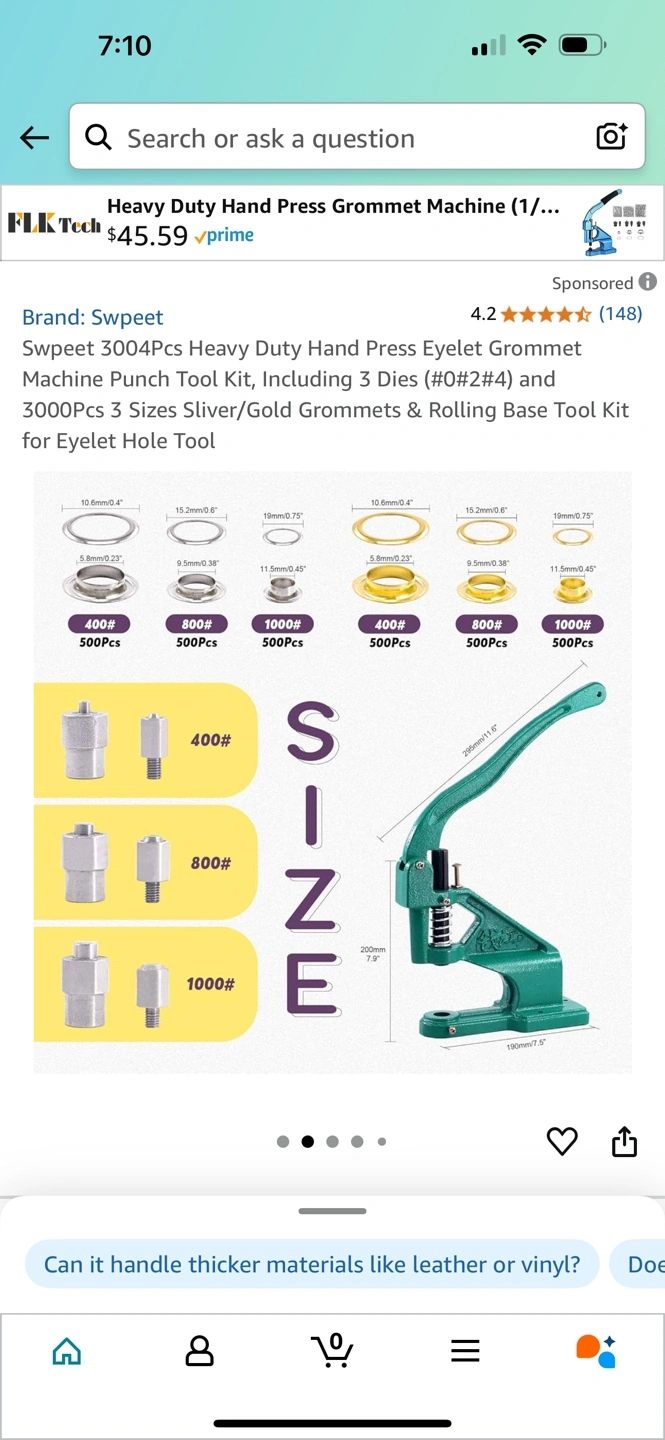 Hand Press Eyelet Tool Kit with Assorted Eyelets