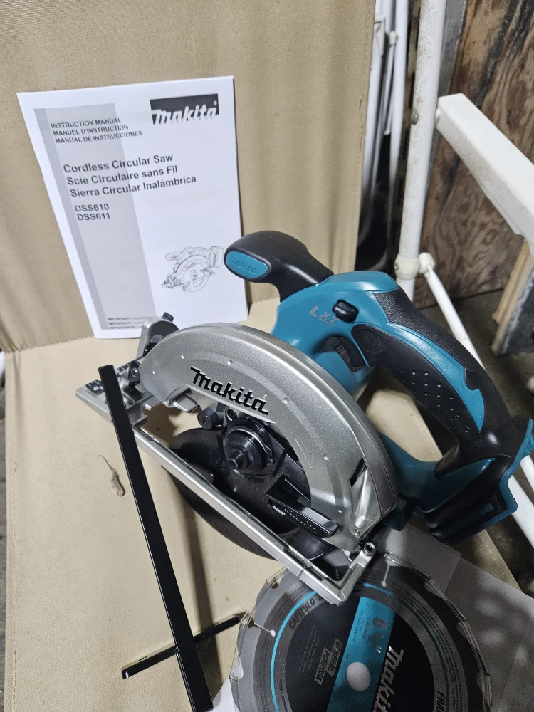 Selling a Makita DSS611 cordless circular saw. It comes with the instruction manual and blade. The blade size is 6-1/2" dia (Ø165mm). It's brand new