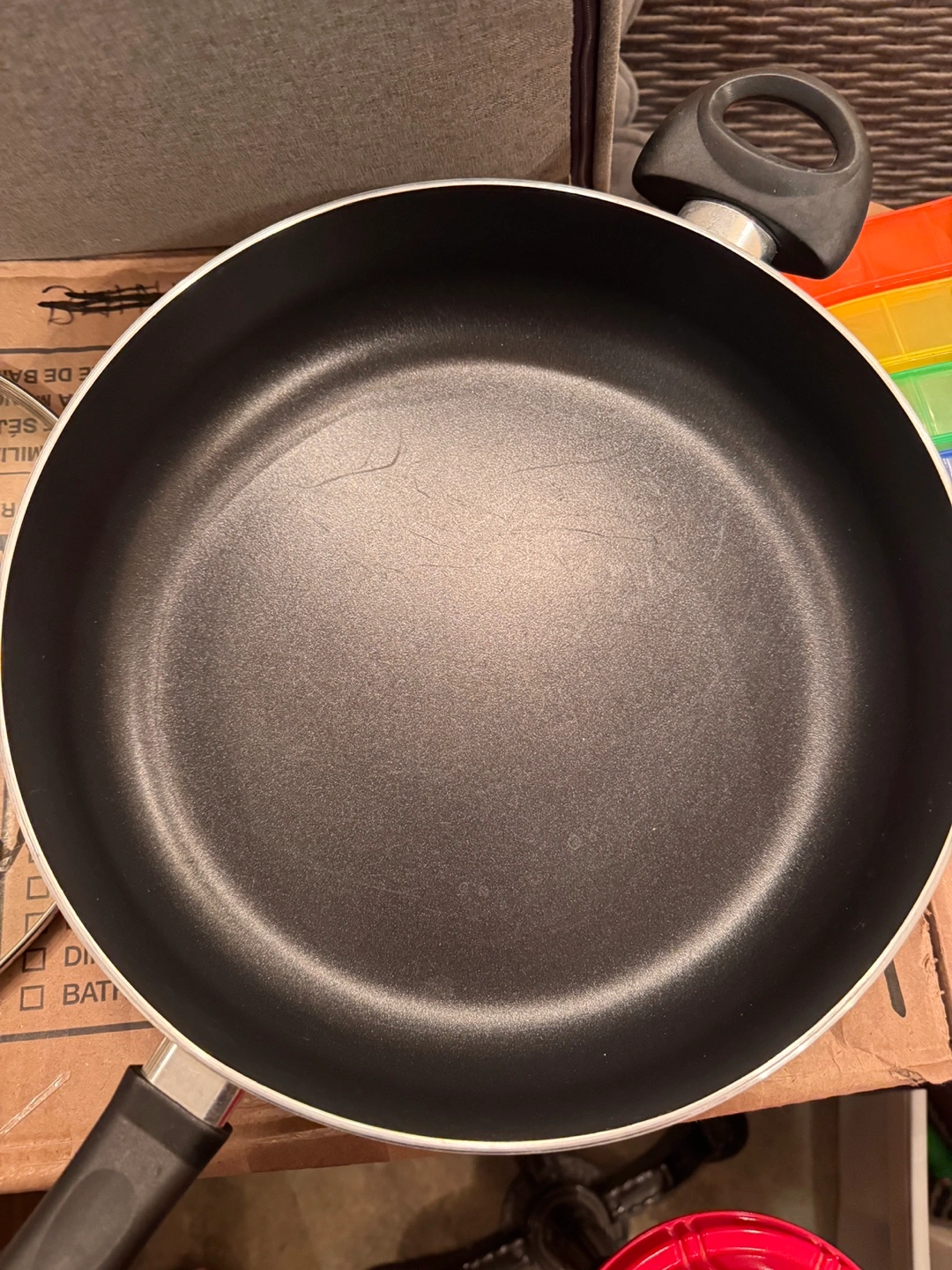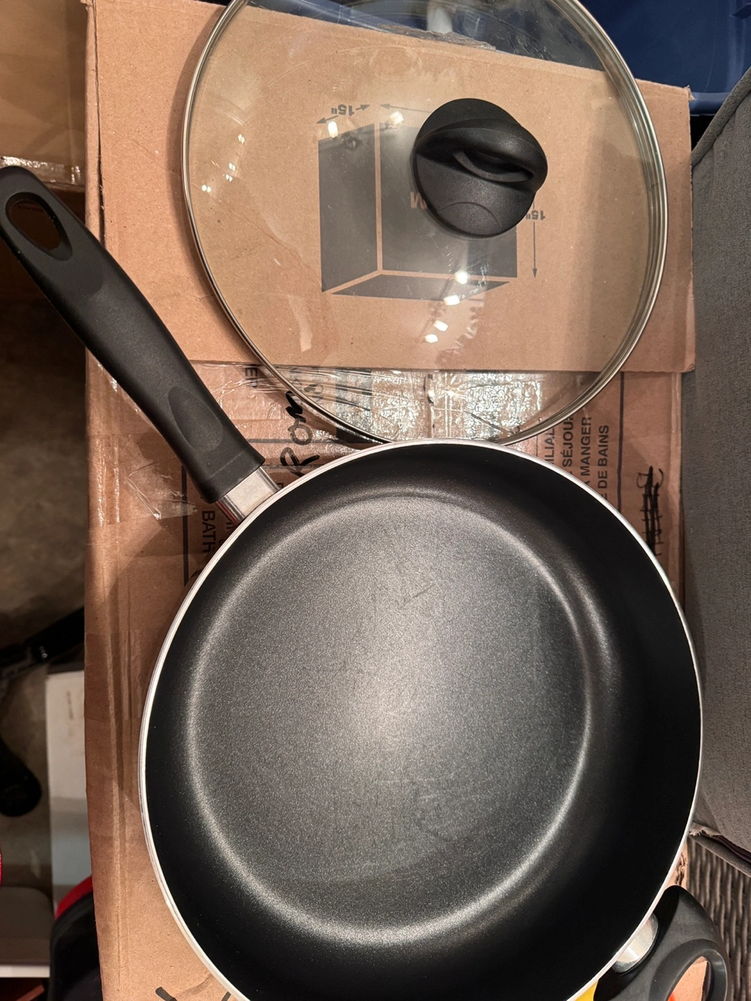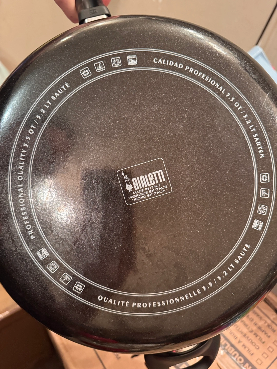 Bialetti saute pan. 9.5 inch diameter. Features a glass lid. Professional quality. Non-stick surface.