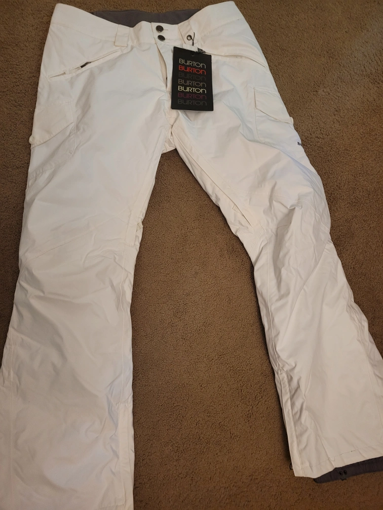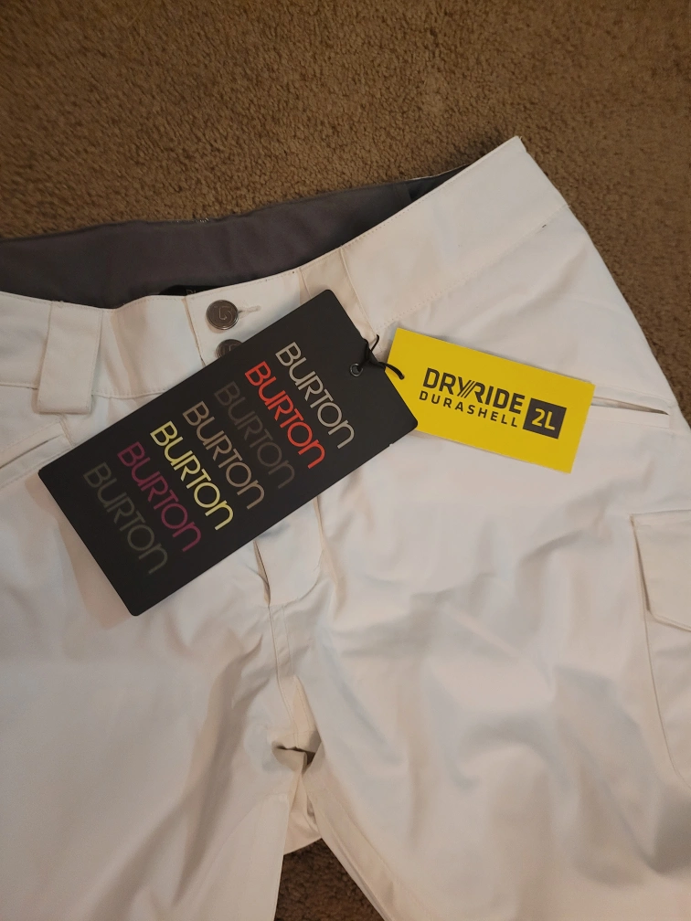 These Burton snow pants feature Dryride 2L technology for waterproofing and breathability. They're white and come with multiple pockets for storage. Perfect for hitting the slopes!