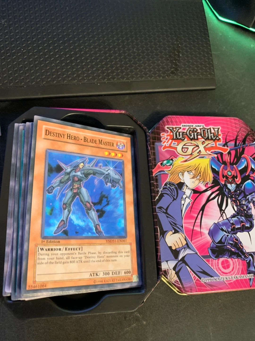 This is a Yu-Gi-Oh! GX Destiny HERO - Blade Master trading card. It's a 1st Edition YSD51-EN007 card. The card's ATK is 300 and DEF is 600. Perfect for collectors!