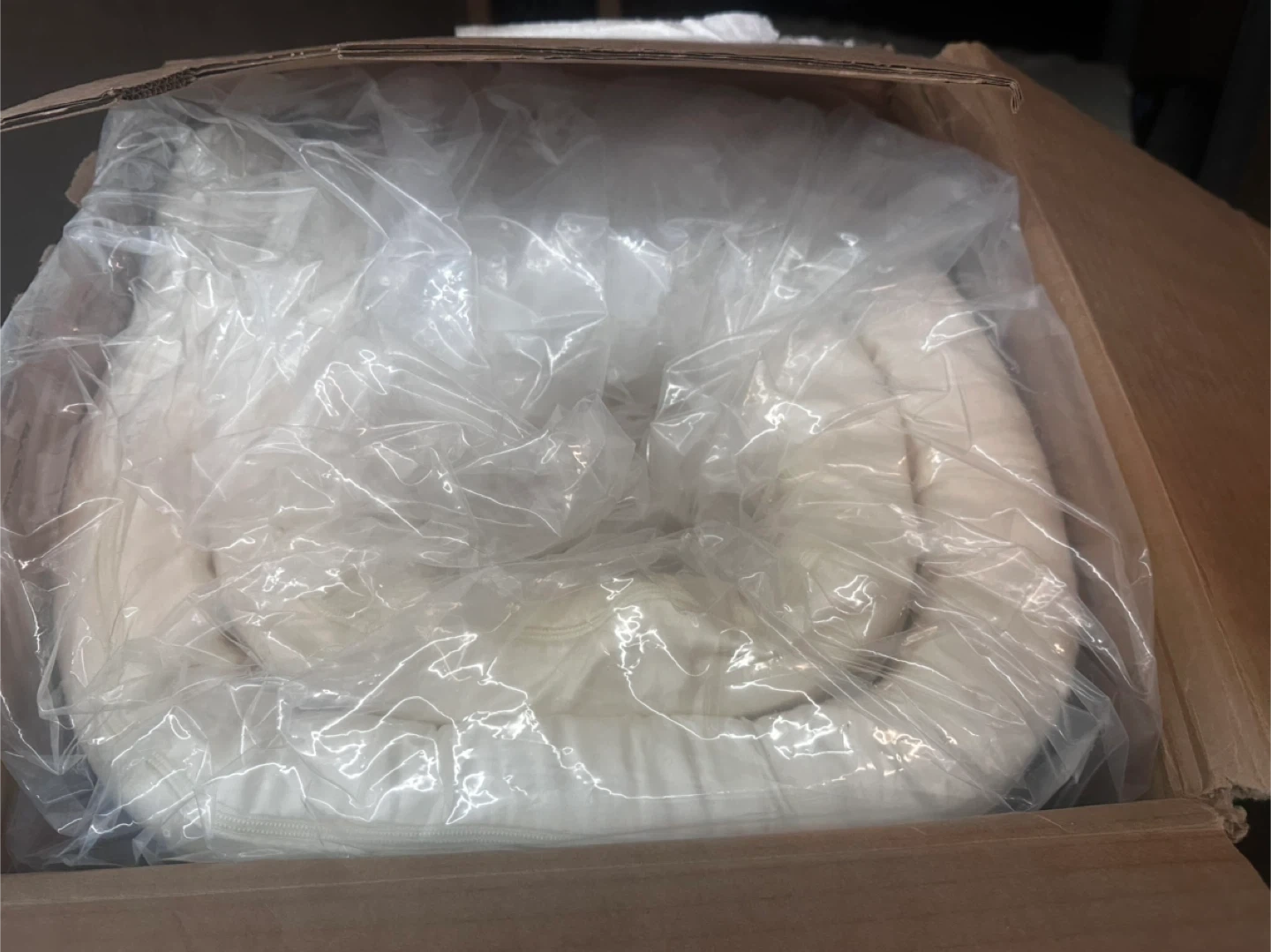 This an organic mattress topper made with premium materials and is beautifully made. It comes rolled up in packaging. Perfect for a good night's sleep! The different sizes King, Queen and full