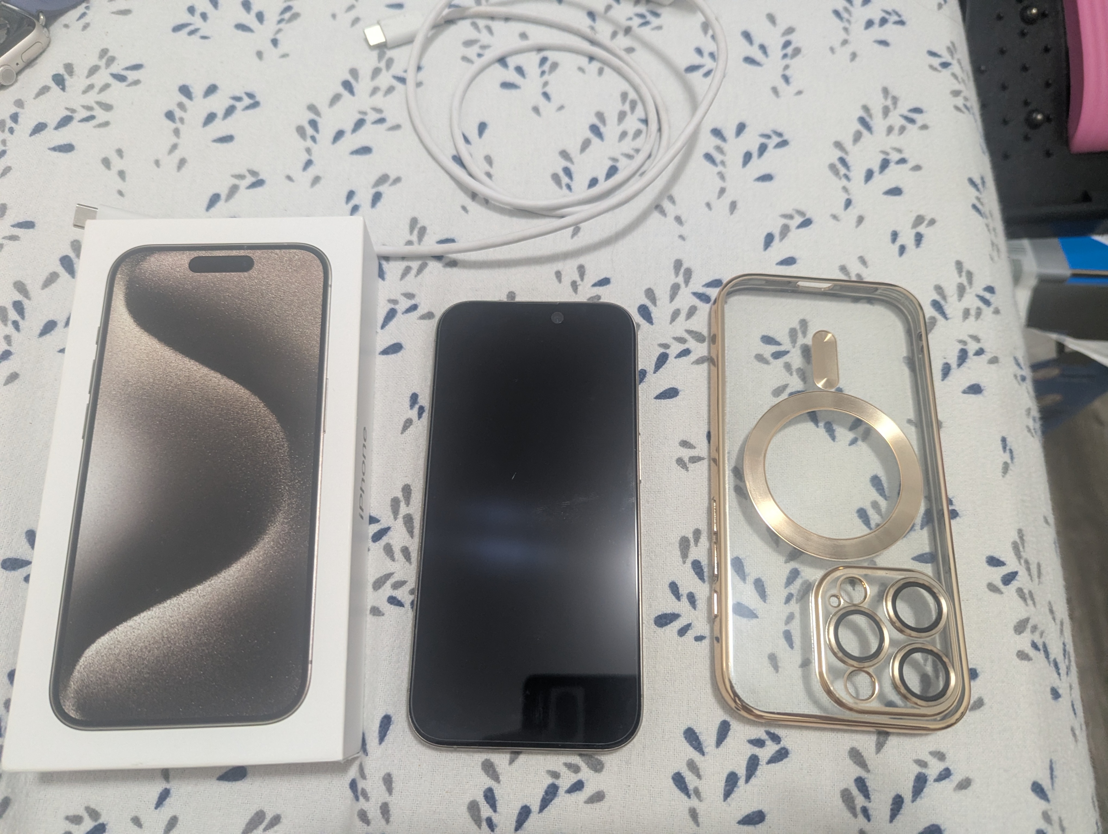 Selling an iPhone 15 ๐˜—๐˜ณ๐˜ฐ 128๐˜Ž๐˜‰. It comes with its original box + ๐˜ฏ๐˜ฆ๐˜ธ ๐˜ต๐˜ข๐˜ฎ๐˜ฑ๐˜ฆ๐˜ณ๐˜ฆ๐˜ฅ ๐˜จ๐˜ญ๐˜ข๐˜ด๐˜ด, ๐˜ฏ๐˜ฆ๐˜ธ ๐˜ฎ๐˜ข๐˜จ๐˜ฏ๐˜ฆ๐˜ต๐˜ช๐˜ค ๐˜ค๐˜ข๐˜ด๐˜ช๐˜ฏ๐˜จ ๐˜ข๐˜ฏ๐˜ฅ ๐˜ค-๐˜ค๐˜ฉ๐˜ข๐˜ณ๐˜จ๐˜ฆ๐˜ณ ๐˜ค๐˜ฐ๐˜ณ๐˜ฅ. Never opened for any repair, no scratches and well maintained gadget. Great deal for a very good condition and look like new phone. Ready to use. Battery: 90% Colpr: Titanium