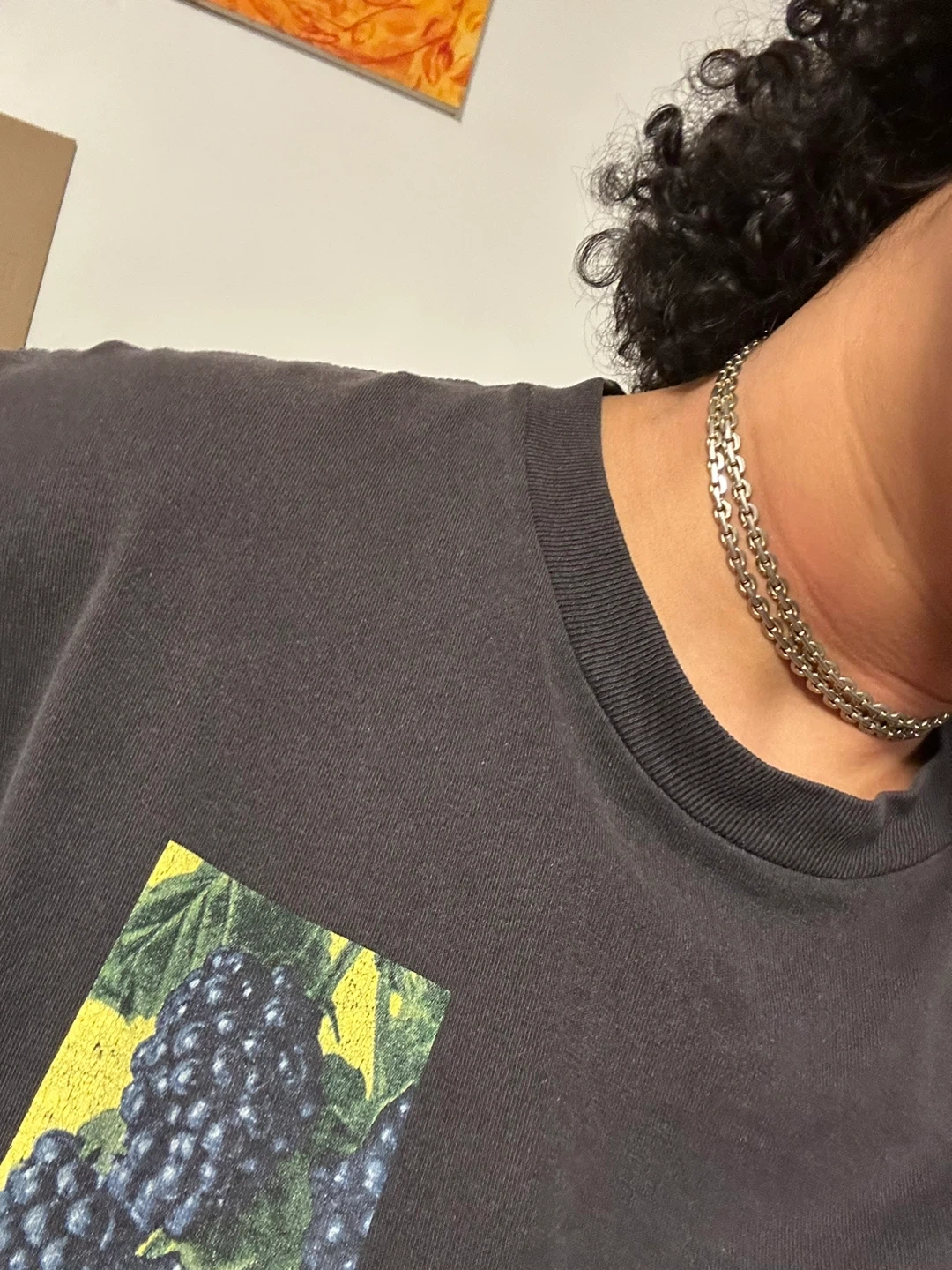 A simple silver chain necklace with a lobster clasp closure. The chain has a unique interlocking link design. Good for a slimmer neck, but can be used as a belt chain, scarf accessory, etc