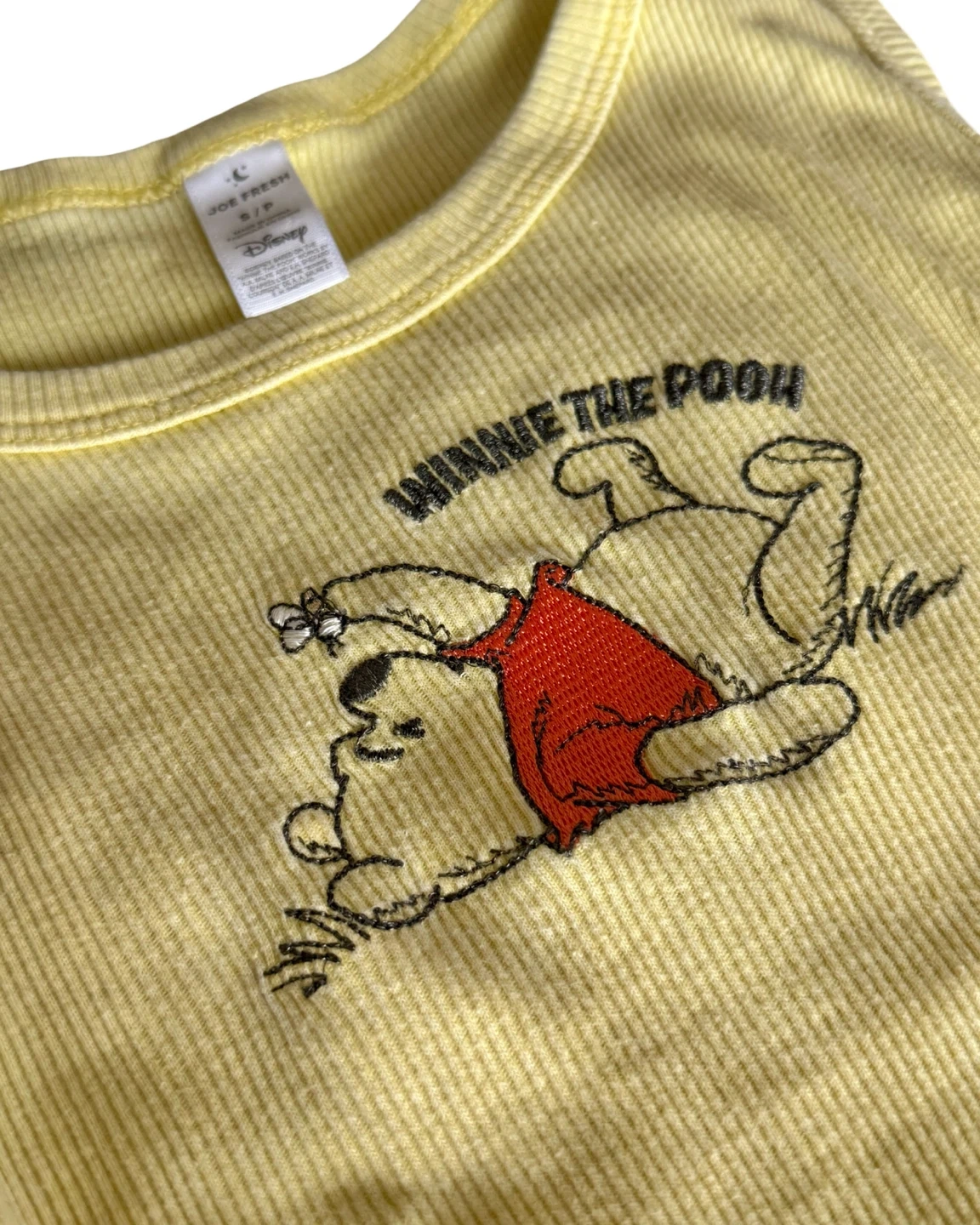 Super cute tank top featuring Winnie the Pooh! It's a size small and in a lovely yellow colour. Great condition !