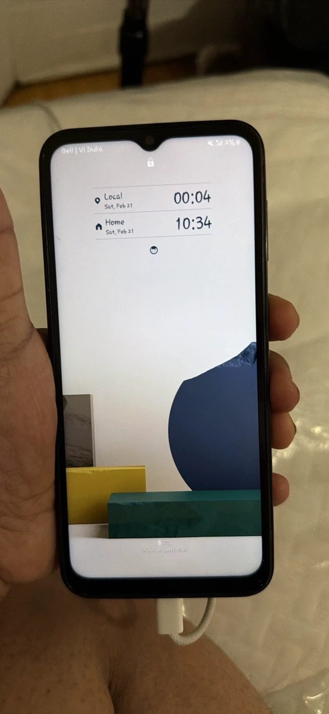 This is a black Samsung Galaxy 128gb smartphone. It's running on the Android operating system. It features a triple-camera setup on the back. The screen is a notch-style display.