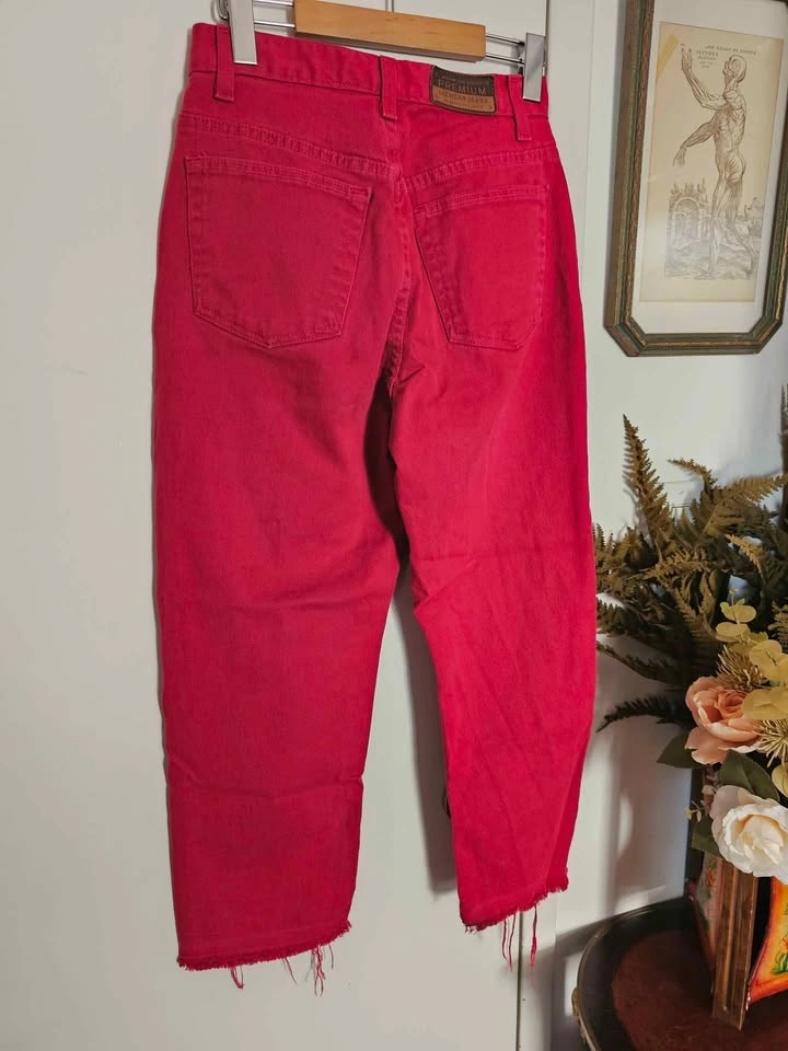 vintage denim mom jeans cherry red jeans 80s jeans 90s jeans