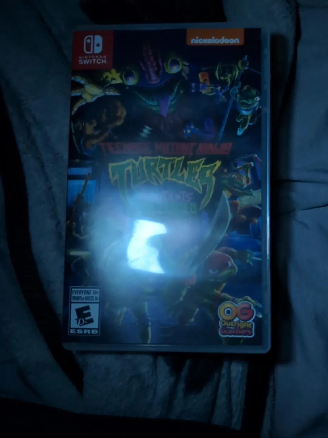 This is the Teenage Mutant Ninja Turtles: Shredder's Revenge game for Nintendo Switch. ESRB rating is Everyone 10+ for cartoon violence. Published by Outright Games.