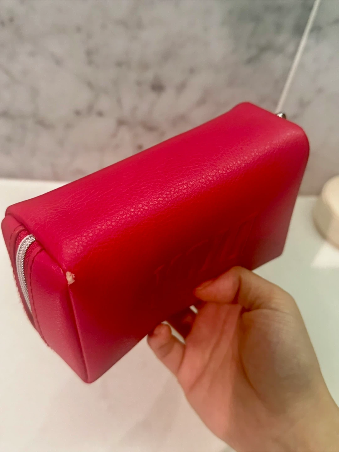 There is a very small tear on one corner of the makeup bag. It is minor and does not affect normal use. As this is an authentic item, I just wanted to disclose this clearly.