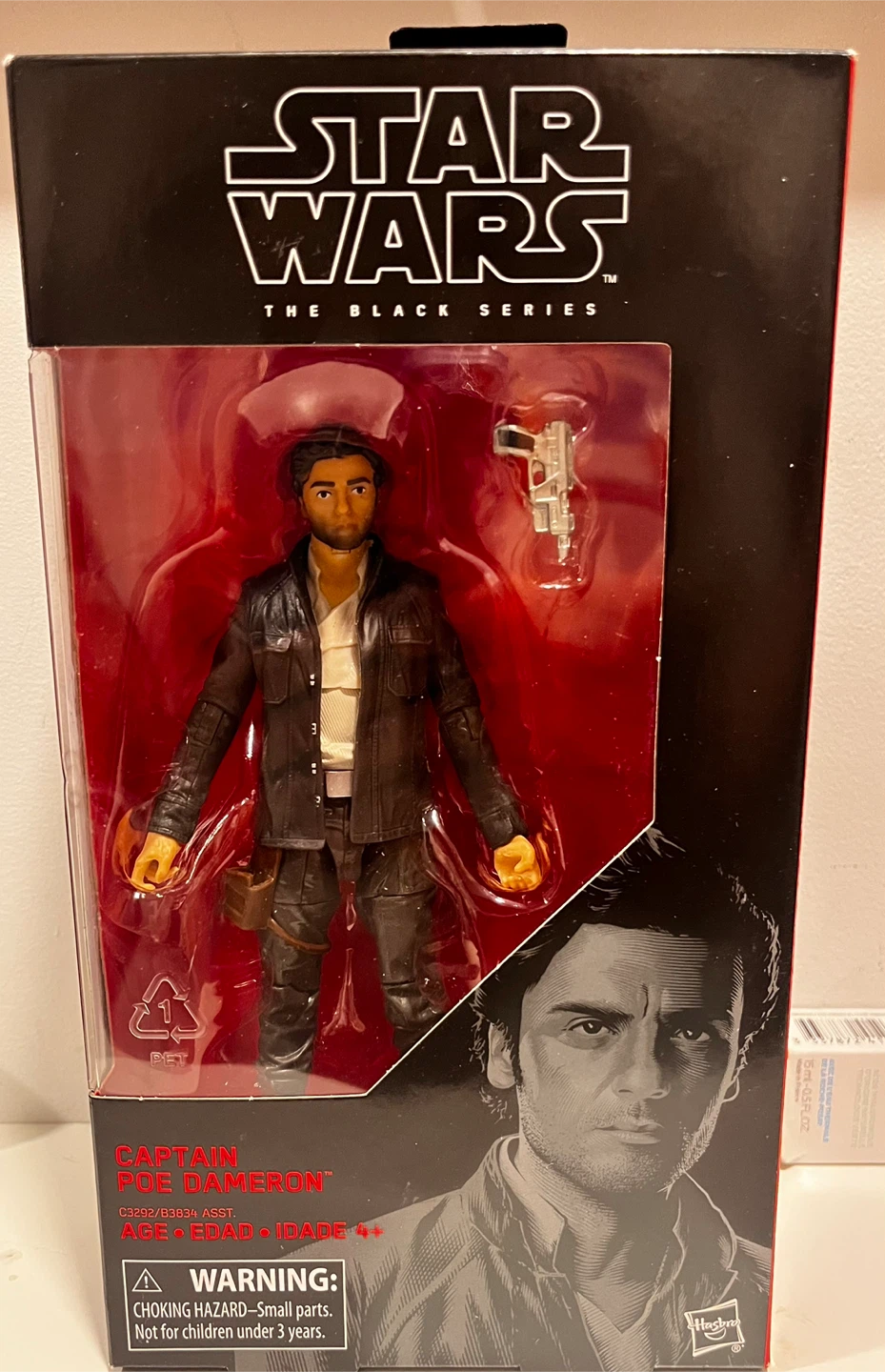 Selling a Star Wars The Black Series action figure of Captain Poe Dameron. The figure is still in its original packaging. Recommended for ages 4+