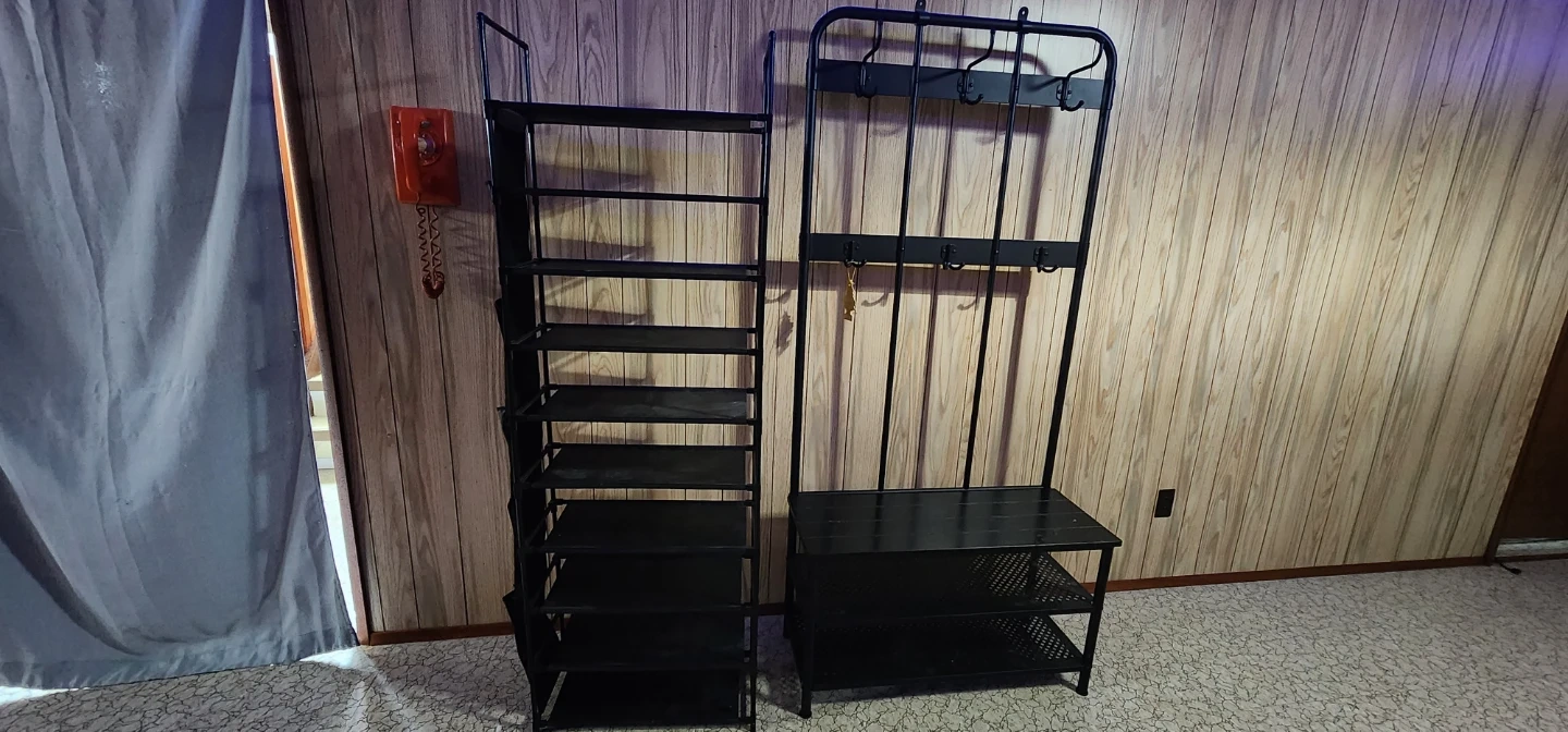 The other is a sturdy shoe storage with built on coat racks. Buy for $100.