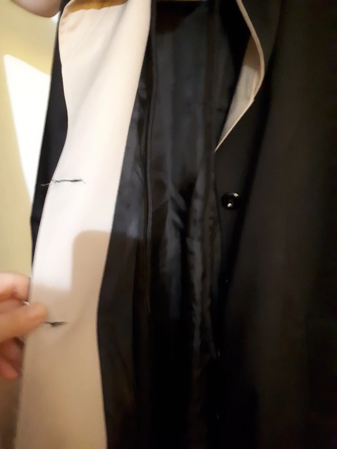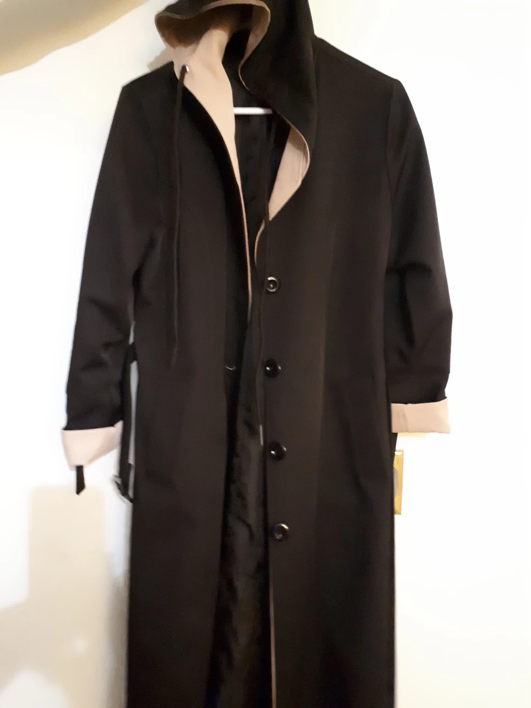 Buy & SellBlack hooded trench coat with tan liningBlack hooded trench coat with tan lining$24Long black trench coat with a tan hood lining and cuffs. It features a belt and button closure. This coat is lined and has a hood.WHERE TO MEETCheck LocationView MapSELLERverifiedEliNewtonbrook E1000+296 reviews1 chats·0 favorites·24 viewsSEND CHAT TO SELLERHi Eli! I’m interested in your listing.Hi Eli! I’m interested in your listing.Get the Karrot app to chatSign In to chat