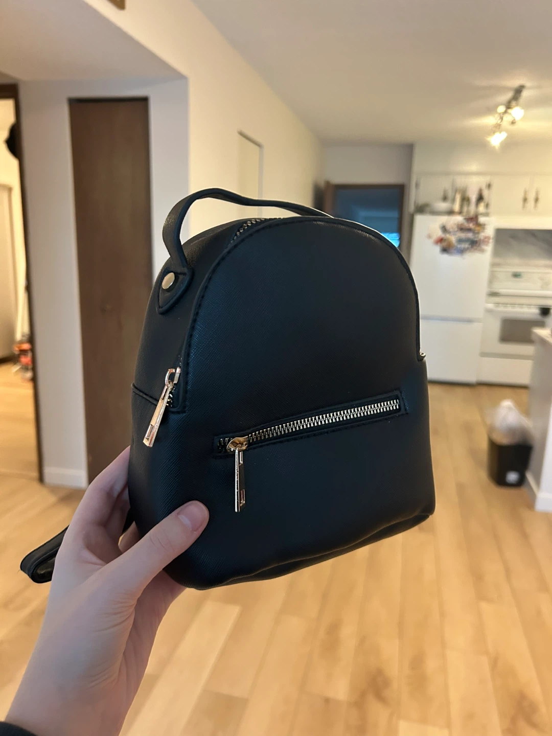Selling a cute black mini backpack purse. It is brand new and perfect for carrying your essentials. The zippers are gold and the straps are adjustable