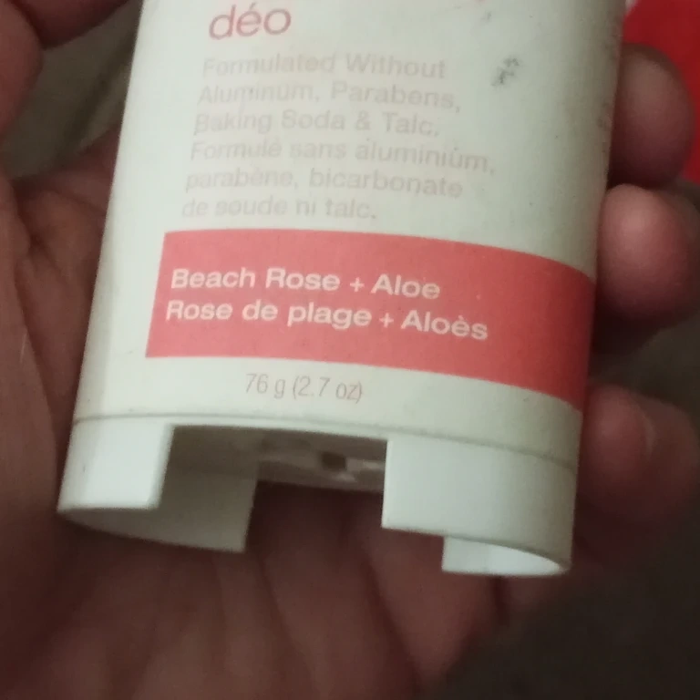 . It's the Beach Rose + Aloe scent. 76 g (2.7 oz).