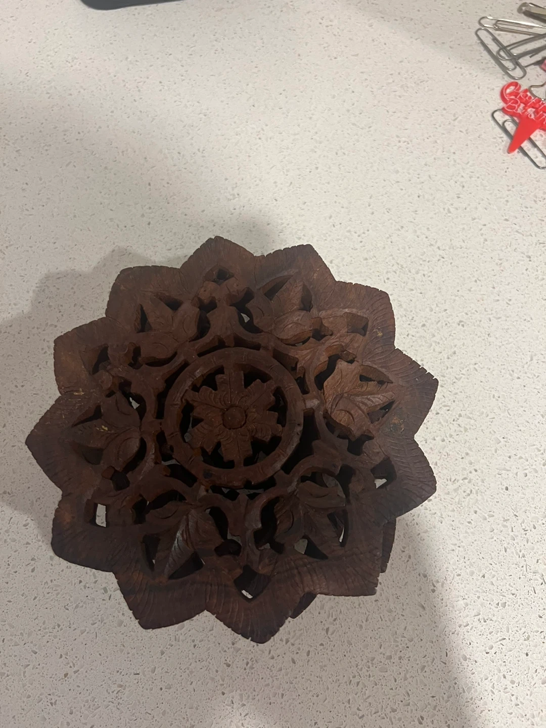 Buy & SellCarved Wooden TrivetCarved Wooden Trivet$10Decorative carved wooden trivet. Intricate floral and leaf design. Used for protecting surfaces from hot dishes.WHERE TO MEETCheck LocationView MapSELLERSaimaBridgwater Centre565 reviews0 chats·0 favorites·1 viewsSEND CHAT TO SELLERHi Saima! I’m interested in your listing.Hi Saima! I’m interested in your listing.Get the Karrot app to chatSign In to chat