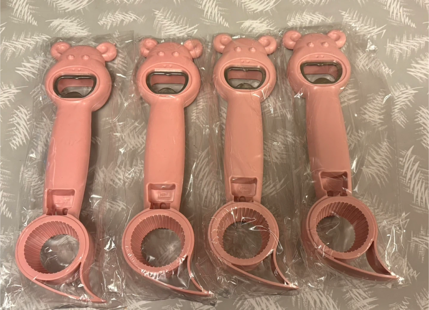 Check out these adorable pink bear multi-function bottle openers! They're brand new and still in their original packaging. Perfect for opening all sorts of bottles and jars with ease. $4 each 😊