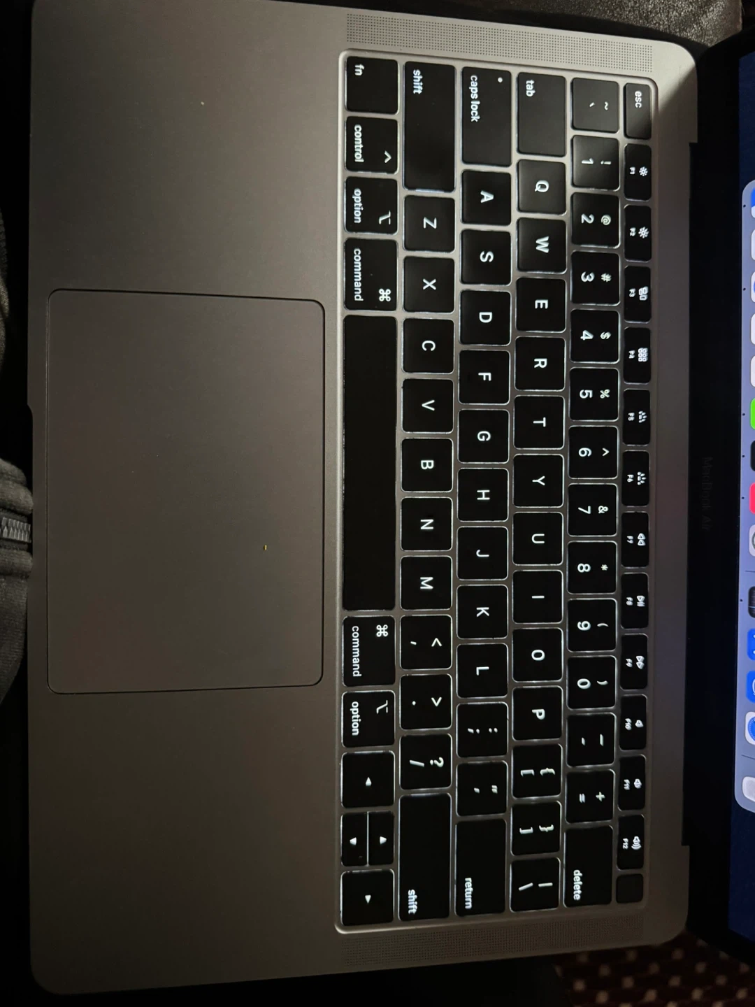 This is an Apple MacBook Air laptop in a silver colour. It has a backlit keyboard and a large trackpad. Perfect for everyday tasks and on-the-go productivity!