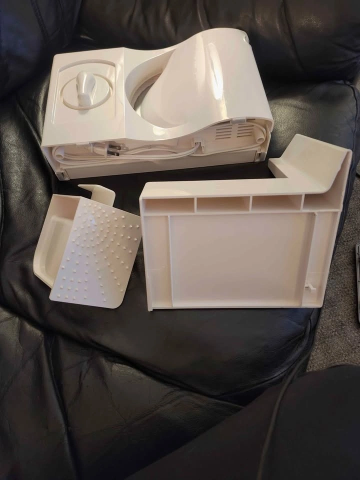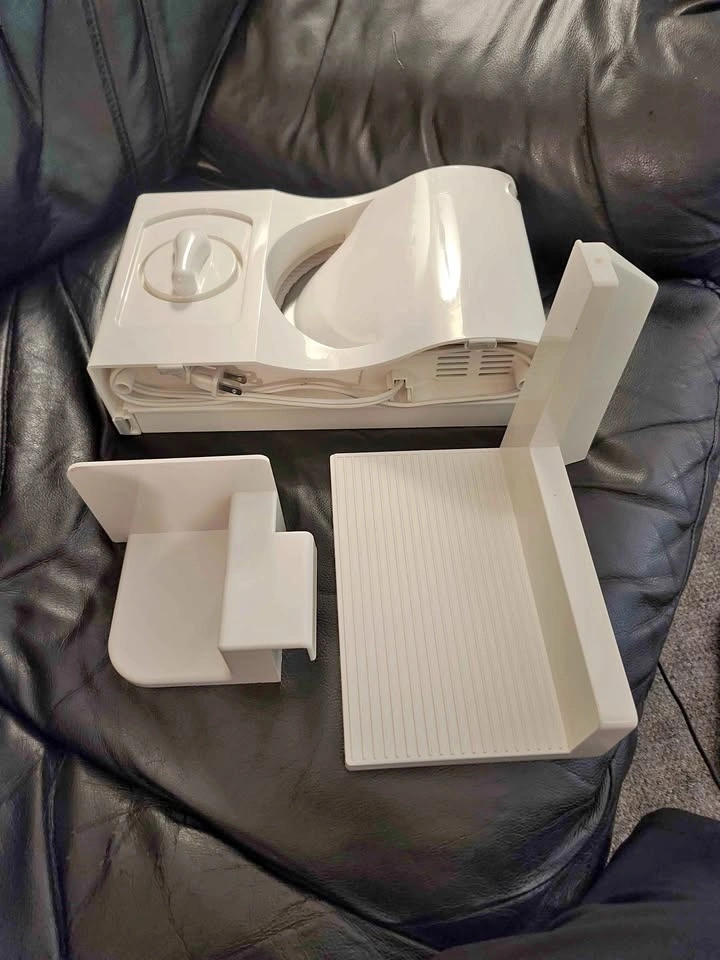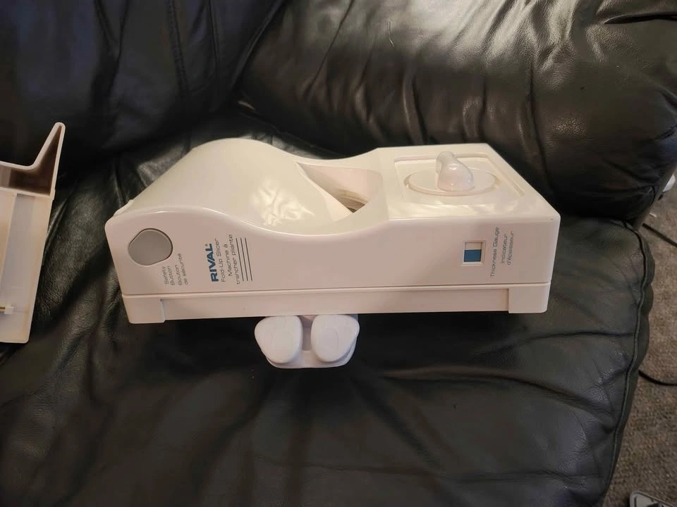 The Rival Fold-Up Electric Food Slicer Model 1042-WN is a white electric slicer designed for slicing meat, cheese, bread and so much more. It features a durable plastic construction, dishwasher-safe parts, adjustable thickness, and a foldable design for easy storage. Perfect for convenient and precise slicing in the kitchen. The users guide can be found with the attached photos. Pick up west maple ridge.