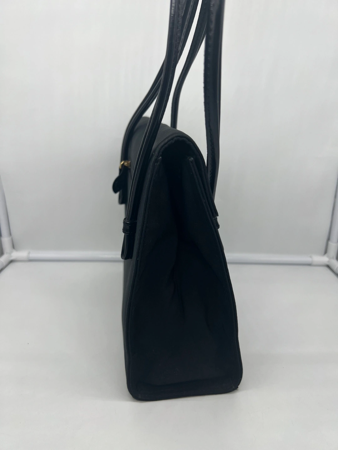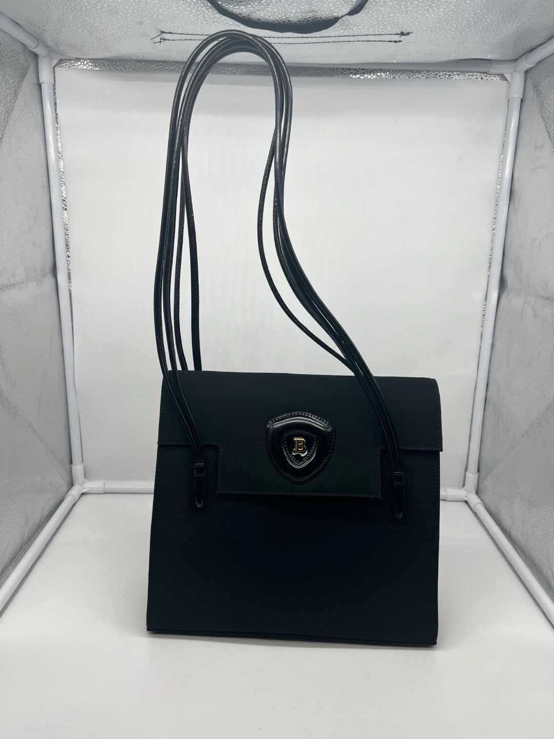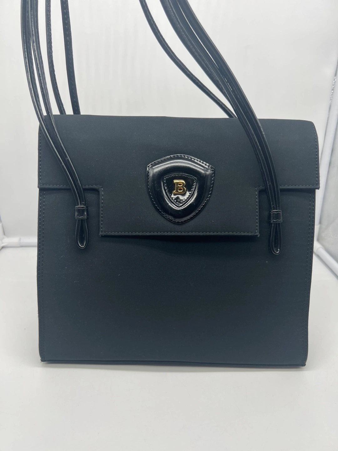 Bally Vintage Black Fabric Leather Handles Shoulder Bag