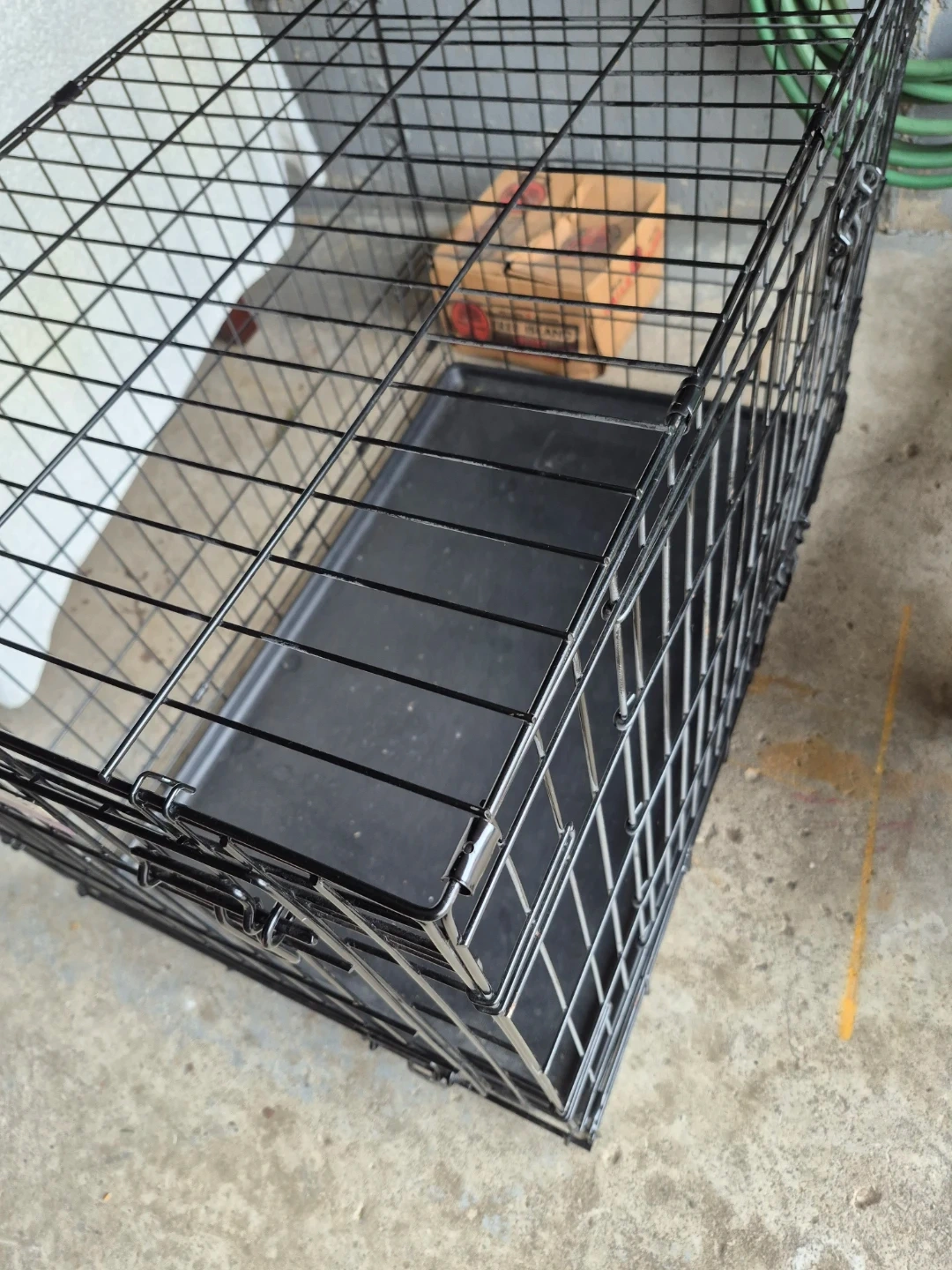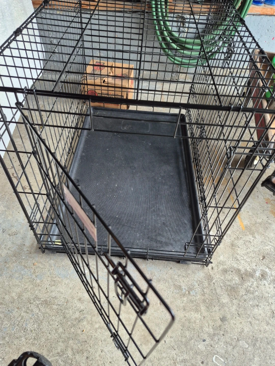 Selling a great dog crate. Great condition and it includes the floor pad. It's black wire construction. Dimensions are 36.5" L x 23.5" W x 24.75" H. It's great for medium to large dogs.
