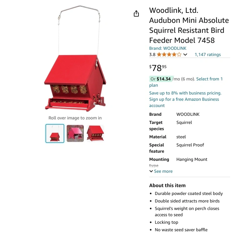 Squirrel proof mini red bird feeder