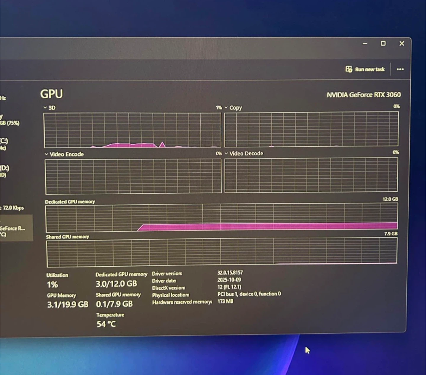 * GPU: NVIDIA GeForce RTX 3060 12GB