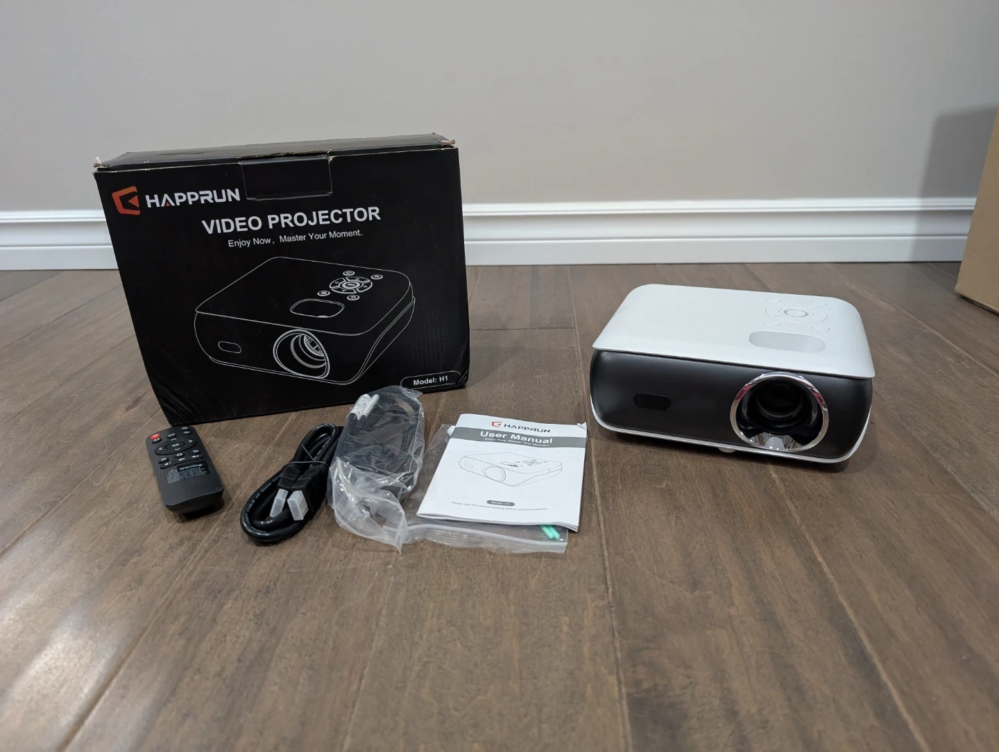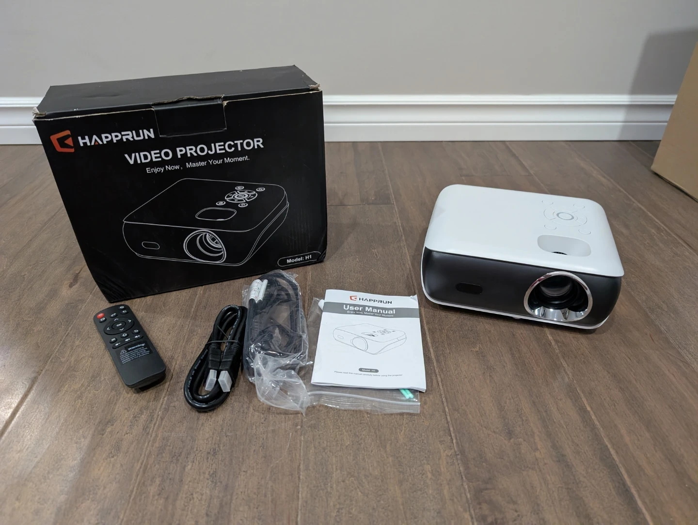 Brand new Happrun native 1080p mini projector for sale. Native 1080p full HD, Bluetooth, HDMI, USB. Remote, HDMI cable included, 10,000:1 high dynamic contrast ratio, excellent brightness, 40” to 200” inch screen size, compatible with many devices, $80 FIRM.