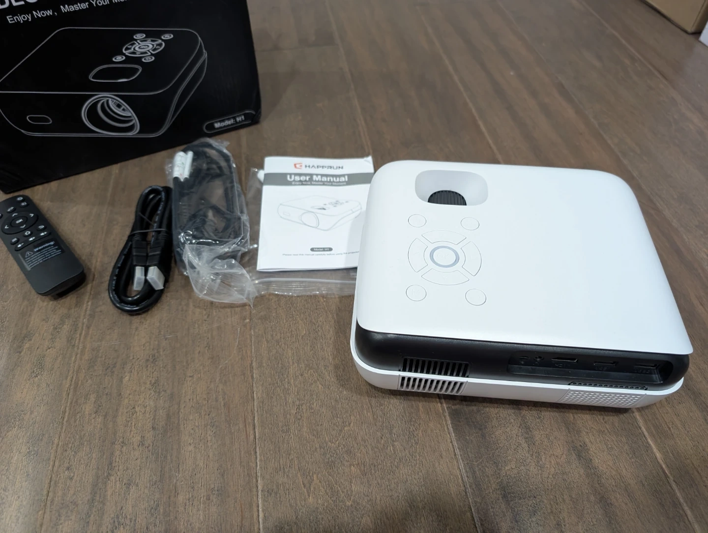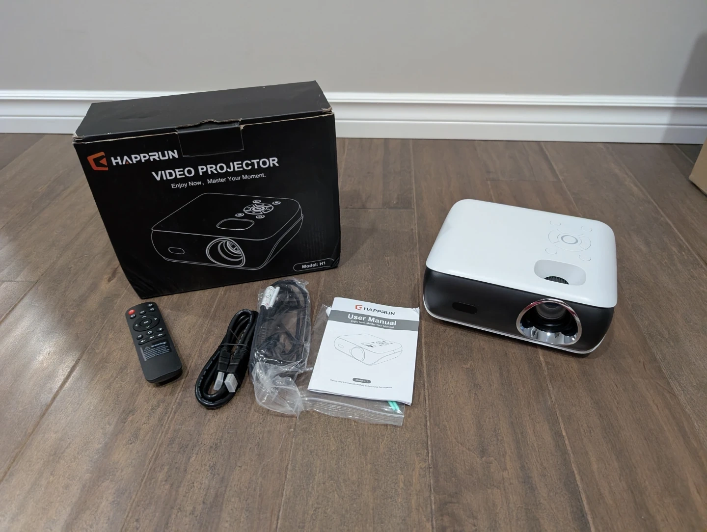 Brand new Happrun native 1080p mini projector for sale. Native 1080p full HD, Bluetooth, HDMI, USB. Remote, HDMI cable included, 10,000:1 high dynamic contrast ratio, excellent brightness, 40” to 200” inch screen size, compatible with many devices, $80 FIRM.