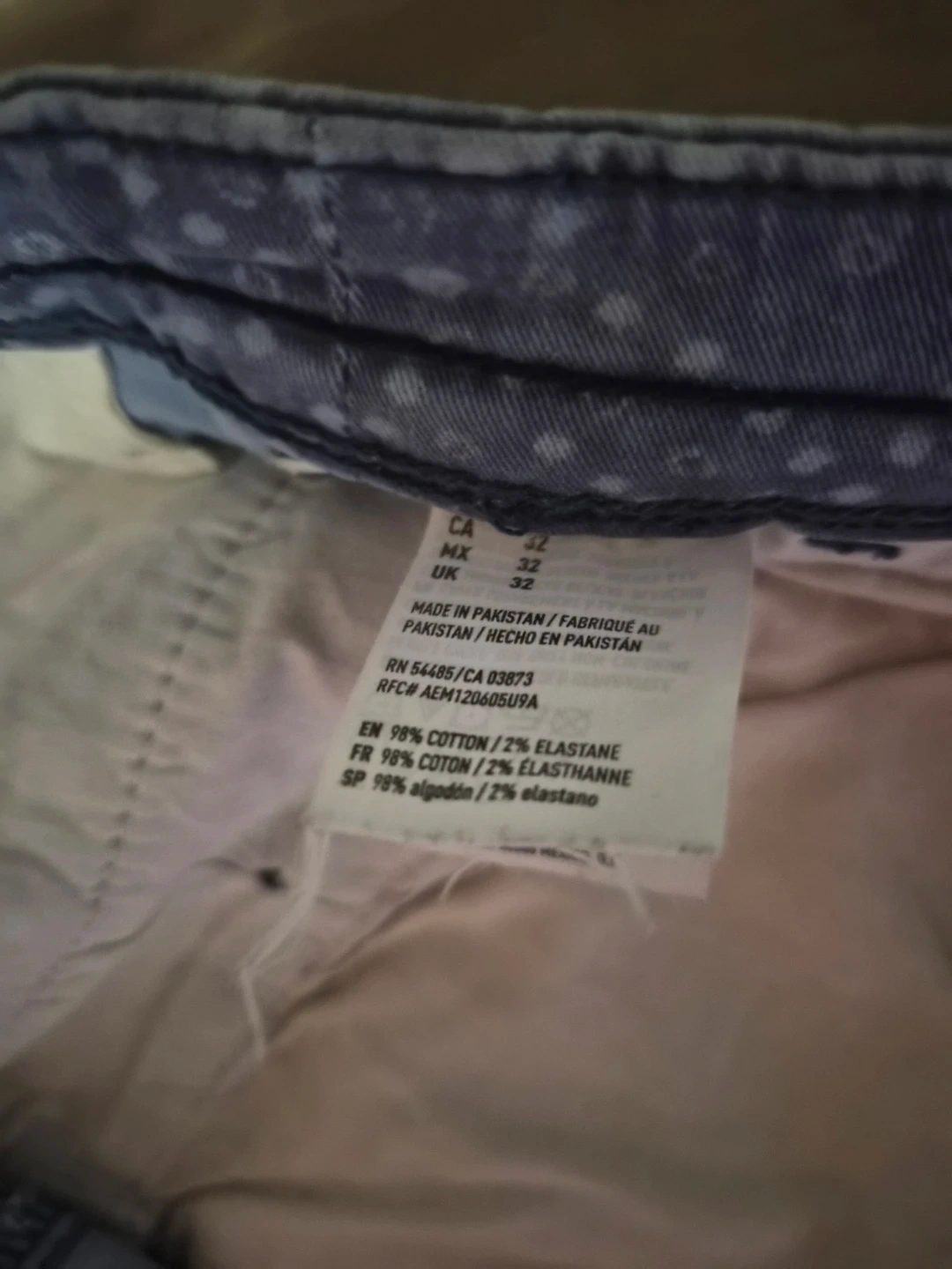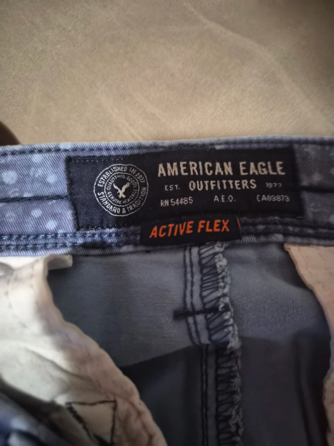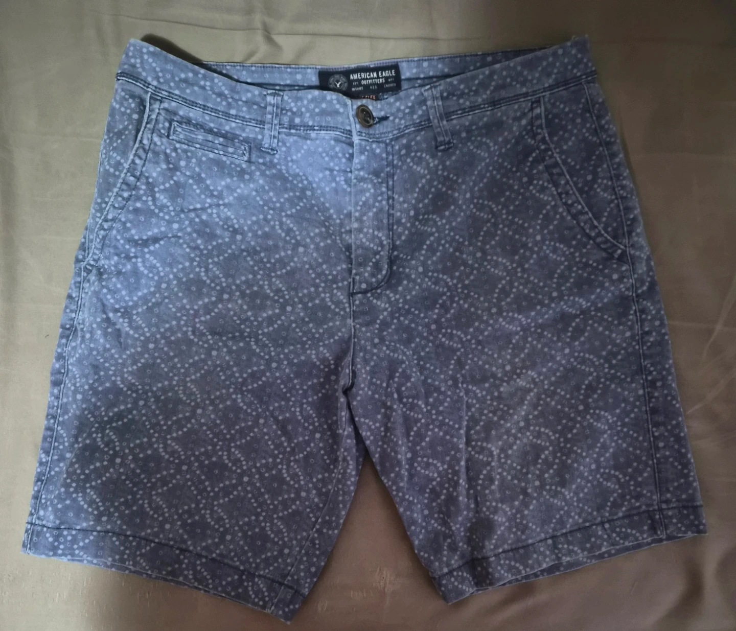 These American Eagle Outfitters shorts are made with 98% cotton and 2% elastane for comfort and flexibility. They feature a stylish all-over dot pattern. The size is 32 Slim,perfect for casual wear during warmer weather that happens 3 days of the year here