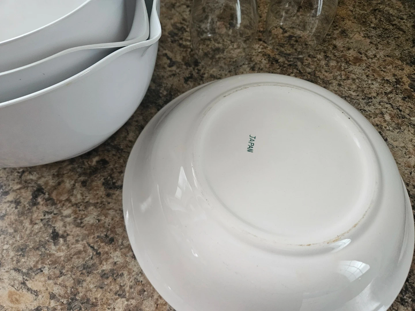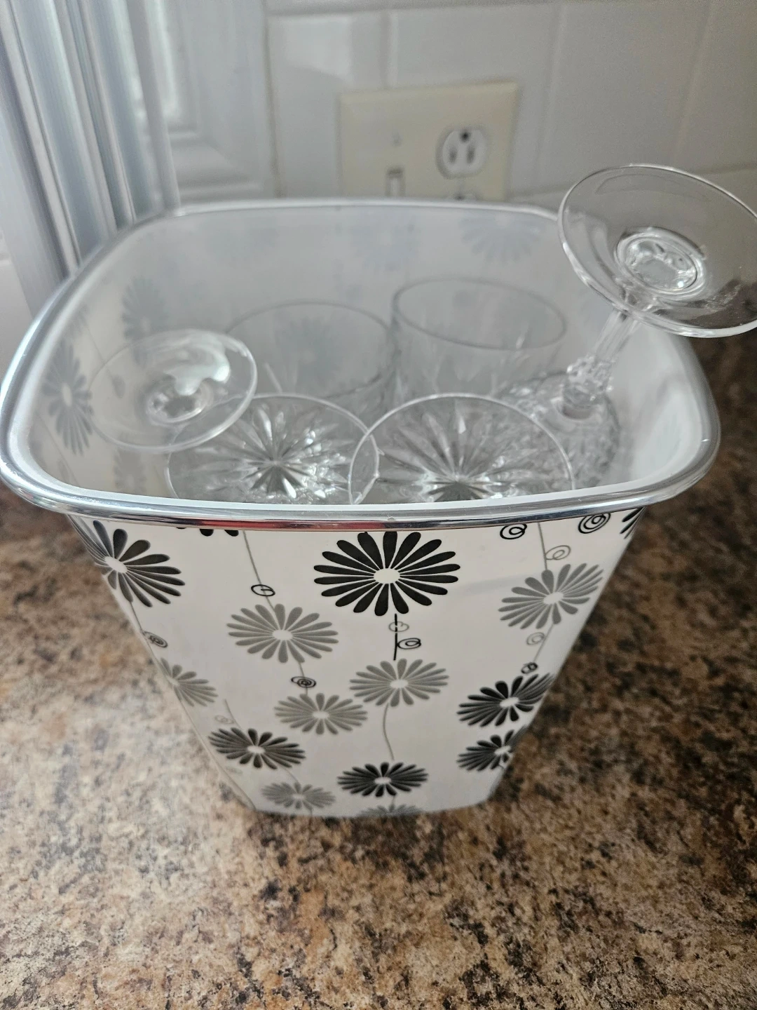 A set of six crystal wine glasses with intricate cut designs. It also includes a decorative serving bowl and a small decorative knife. Perfect for hosting gatherings