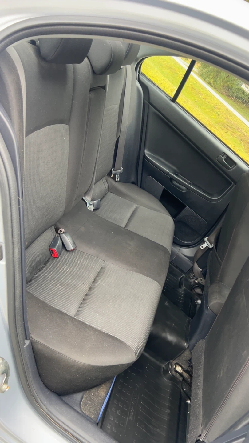 This silver Mitsubishi Lancer features stylish black rims. It's a four-door sedan with a sporty design. The car has tinted windows and a rear spoiler. It's a great option for daily commuting or weekend drives!