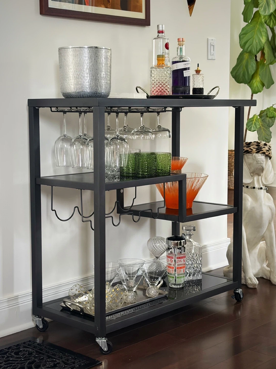 3-Tier Bar Cart with Wine Glass Rack
