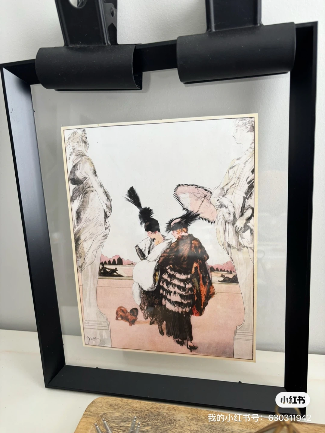This photo framed is bought from Crate&Barrel. This art print is a reprint from 50th year of Bazar magazine. The art is presented in a simple black frame. It's a unique piece that adds character to any space.