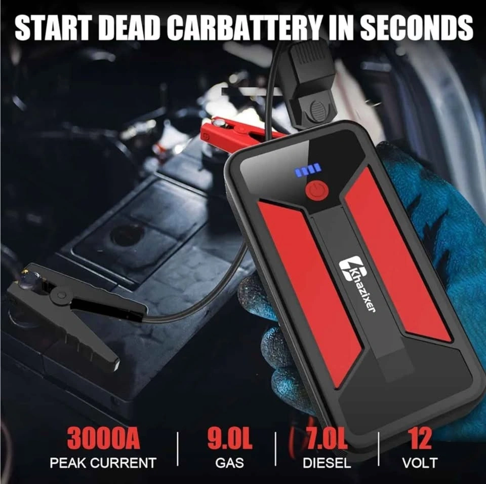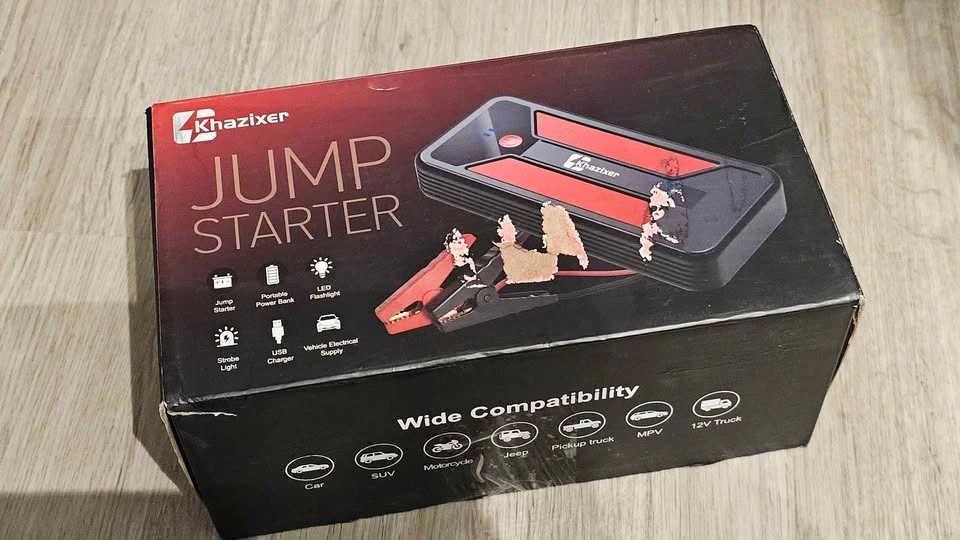 Open box but not used, it's new. This is the ET02 model, a 3000A peak jump starter for 12V lithium portable batteries. It's suitable for up to 9.0L gas and 7.0L diesel engines. Comes with jumper cables.