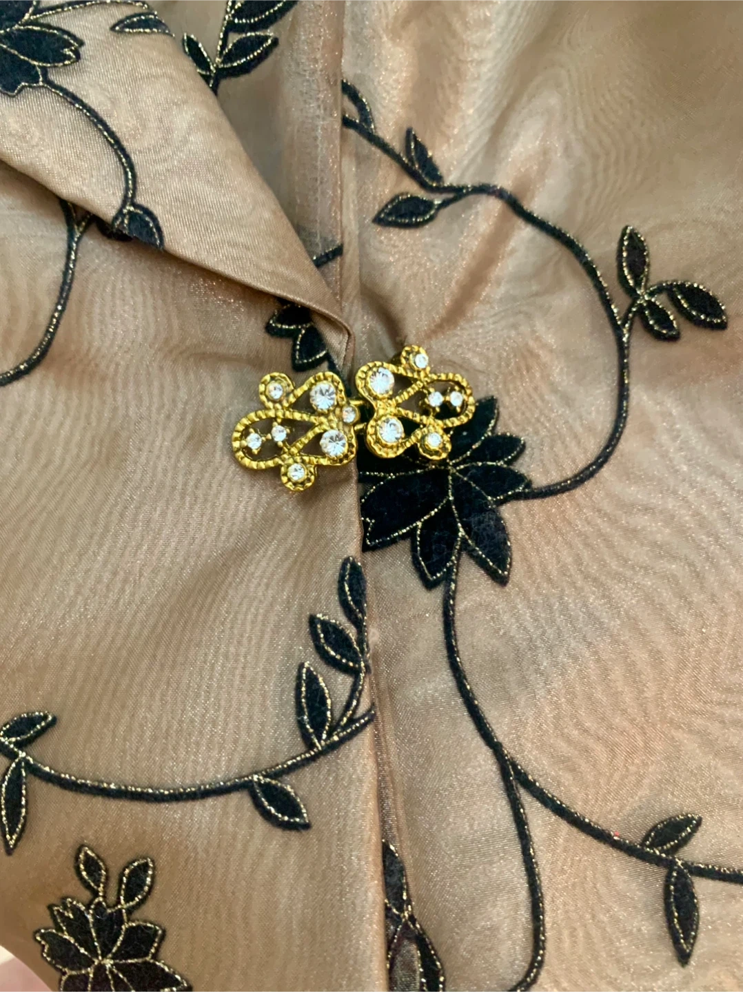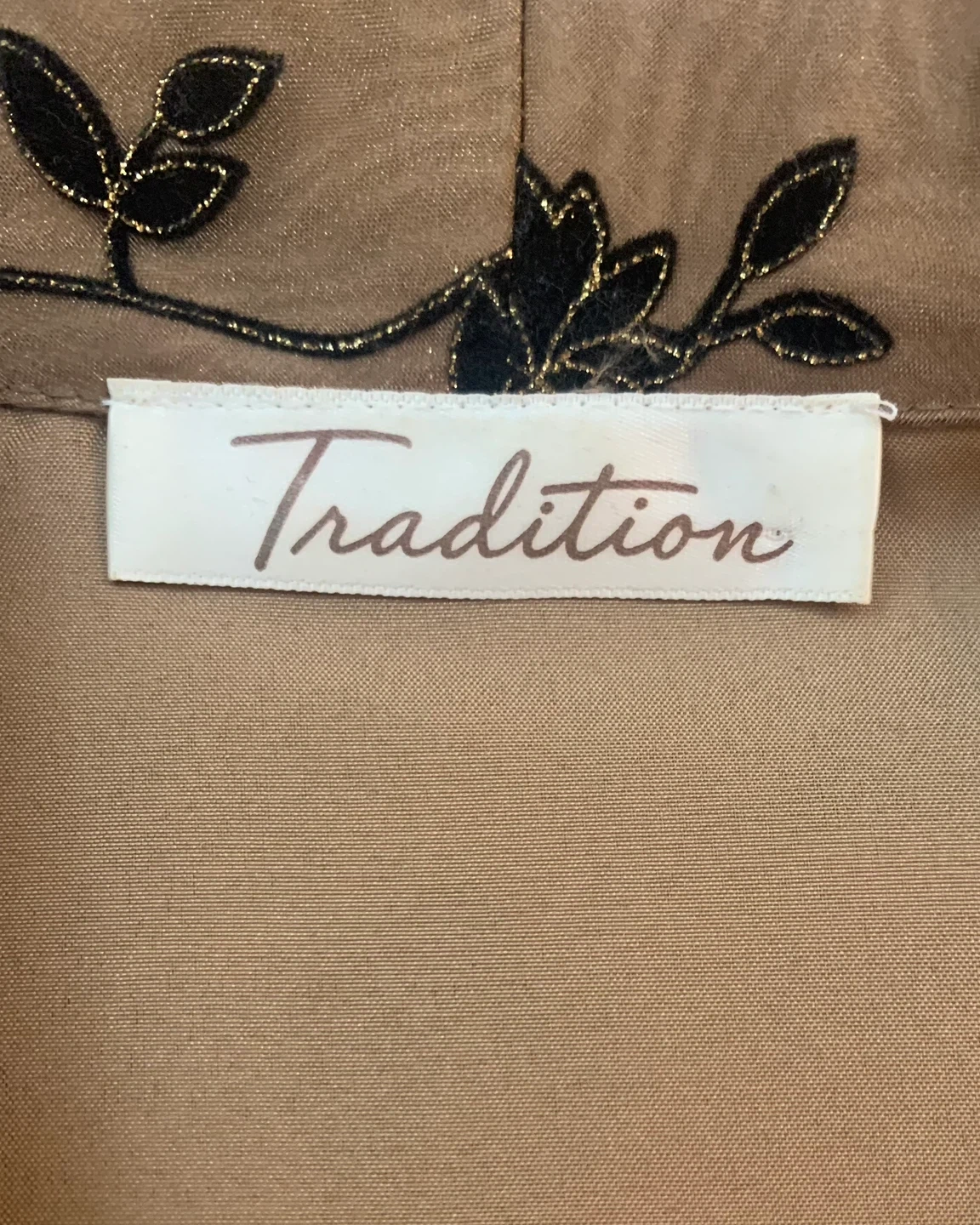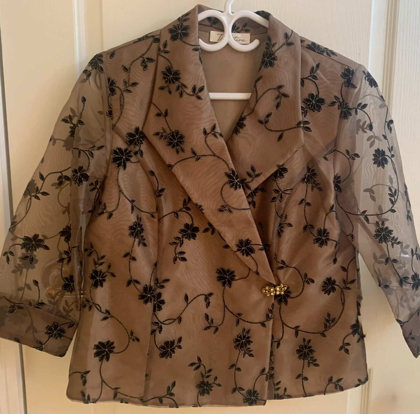 Selling a Vintage Tradition Jacket in size 8. It's a beautiful with a unique floral pattern. The material is 70% polyester and 30% nylon; bodice is fully lined, sleeves are see through. Likely from 50/60s