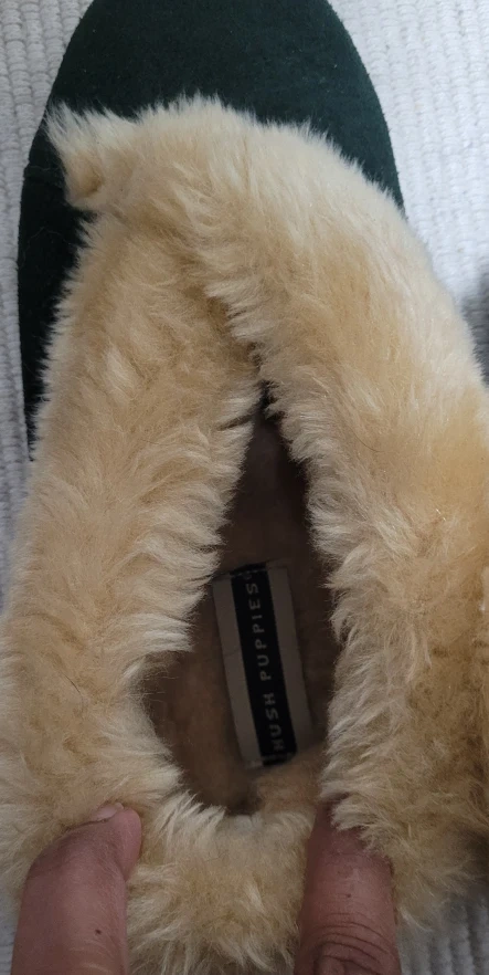 Cozy Hush Puppies slippers in a dark green suede! They're a size 5 and in great condition. Perfect for keeping your feet warm on chilly days