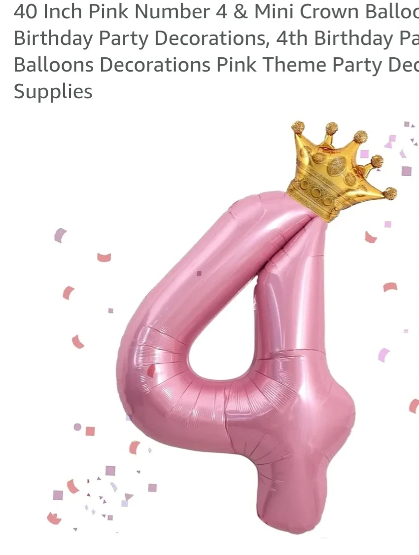 This is a 40-inch pink number 4 balloon. It also includes a mini crown for decoration. Great for a 4th birthday party!
