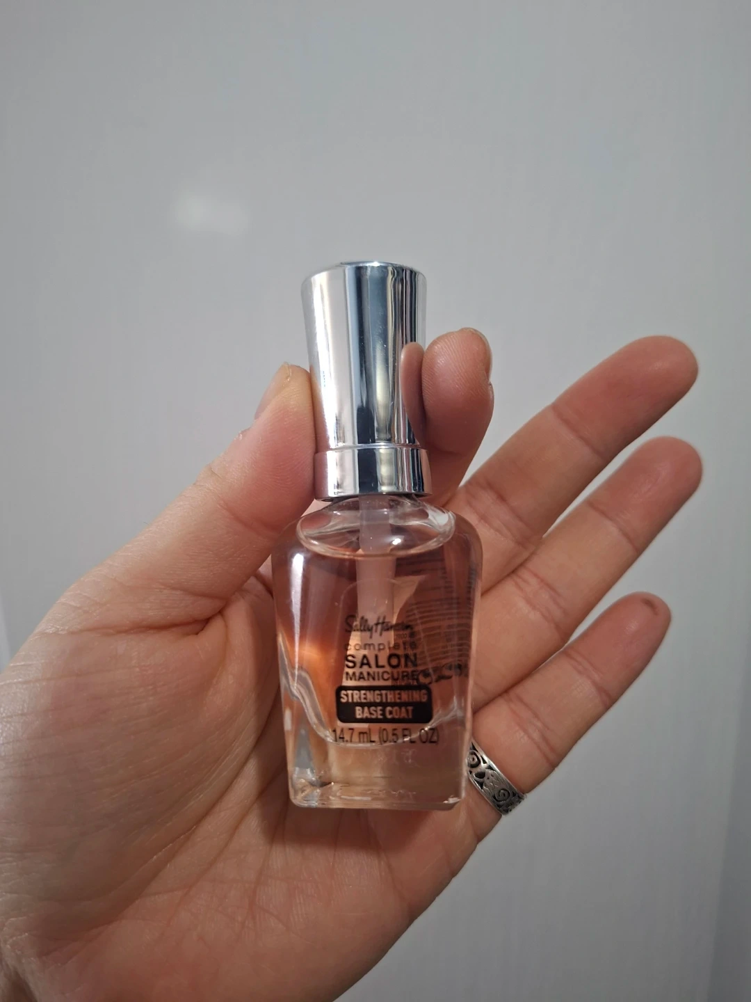Sally Hansen Complete Salon Manicure Strengthening Base Coat. 14.7 mL (0.5 FL OZ). It's a base coat for manicures.