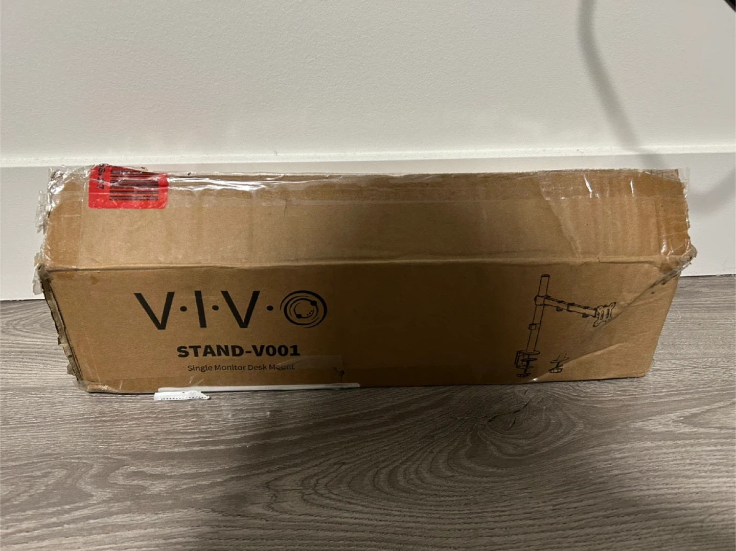 This is a VIVO STAND-V001 single monitor desk mount. It's designed for mounting one monitor to your desk. The mount uses a clamp mechanism for attachment.