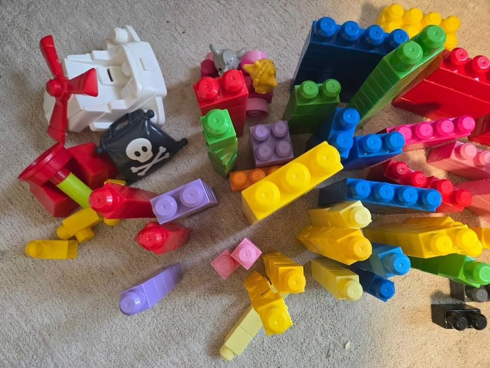 Selling my kids mega blocks. Had them in storage because they out grew. I counted 249 pieces. Still in great condition. Has a few animals,a pirate flag and helicopter attachment.