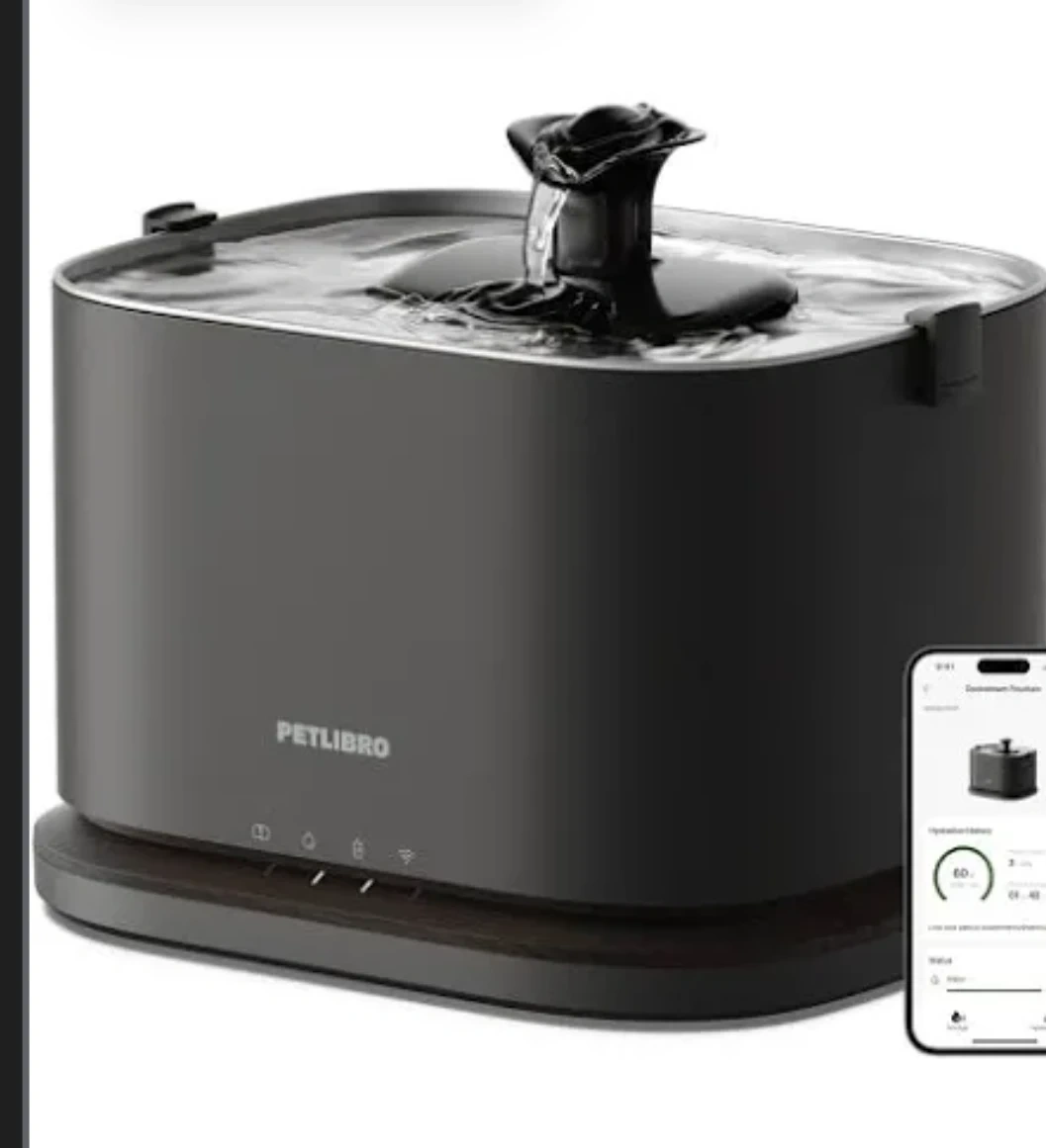 This PETLIBRO automatic pet water fountain keeps your pet hydrated with fresh, flowing water. It features a multi-layer filtration system and a large capacity.